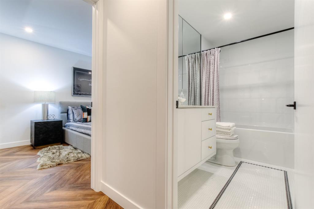 Located in the master-planned community of West District, Gateway offers an exceptional standard of living. This meticulously designed 2-level Brownstone is a perfect blend of modern elegance and sophisticated craftsmanship, featuring 3 Bedrooms, 3 Bathrooms, and a versatile main floor Den/Bedroom. It also includes 2 titled underground parking stalls, offering both convenience and security. From top to bottom, this home is crafted with the highest quality finishes and attention to detail. Inside, you’ll find luxurious touches like air conditioning, Chevron luxury wide-plank flooring, and custom penny round mosaic tiles in every bathroom. LED pot lights illuminate the space, highlighting the elegantly painted ceilings throughout. The chef-inspired kitchen is a true centre piece, boasting a super matte finish cabinet with brushed gold hardware, high-end appliances, and exquisite design. It includes a gas cooktop, wall oven, an integrated 36" Fisher & Paykel fridge, panelled dishwasher, and soft-close custom cabinetry. The under-cabinet lighting and stunning quartz countertops and backsplash add to the visual appeal, making this kitchen a space both functional and beautiful. Other thoughtful features include a washer and dryer, custom window coverings for the floor-to-ceiling windows, and direct access to the private patio. The Primary Suite offers its own private balcony, providing the perfect retreat. Experience unparalleled luxury and comfort at Gateway. Stay tuned for an upcoming photo gallery that will showcase the full beauty of this one-of-a-kind residence. This is more than just a home – it’s a lifestyle!