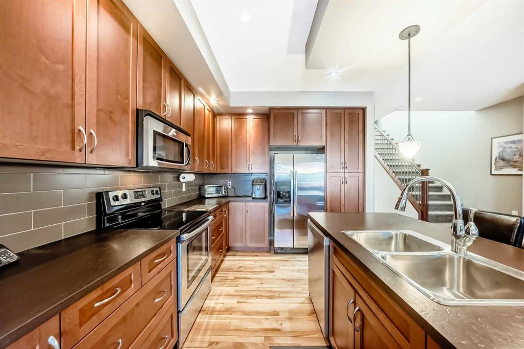 Welcome to this exceptional residence, a perfect blend of style and functionality, ideal for those seeking both comfort and luxury. This home boasts a gourmet kitchen that is sure to delight any culinary enthusiast. It features an abundance of cinnamon-stained maple cabinetry, providing ample storage space, and is equipped with stainless steel appliances. The kitchen is complemented by a convenient cabinet pantry and an island that doubles as an eating bar, making it both practical and inviting for family gatherings and entertaining guests.