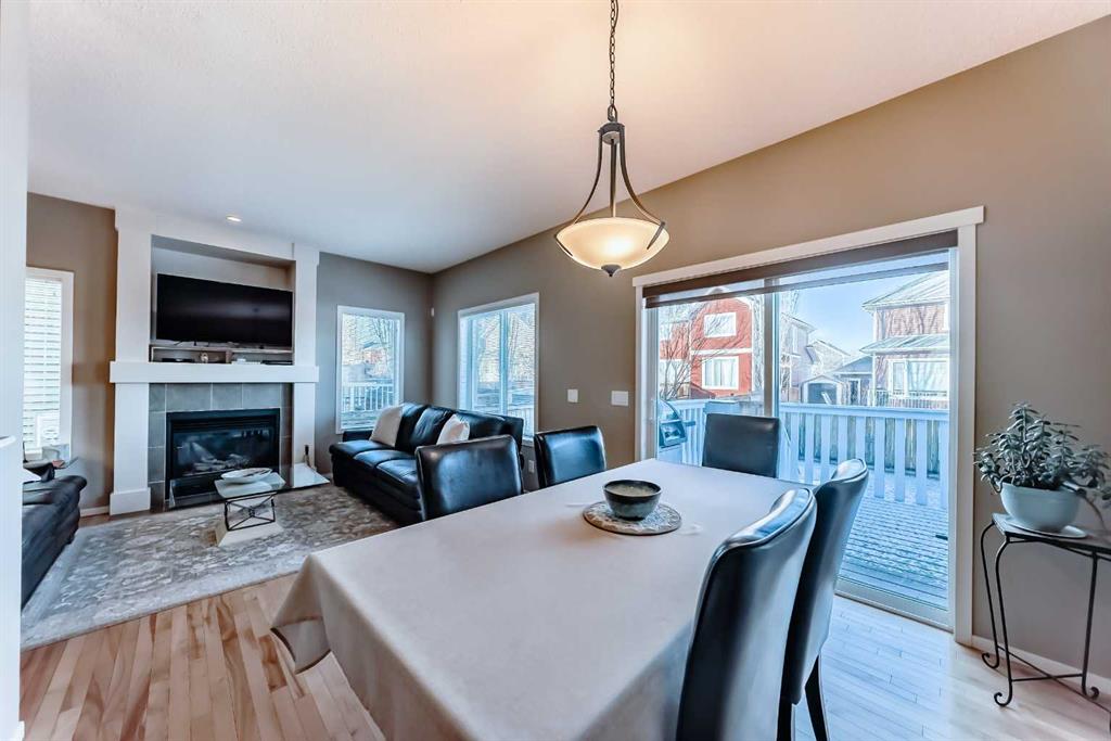 The main floor has 9 foot ceilings and flows with its natural maple hardwood flooring, seamlessly combined with ceramic tile in select areas for a refined and durable finish. At the heart of the living space is a cozy gas fireplace, framed by an entertainment niche that offers the perfect setting for relaxation and socializing.