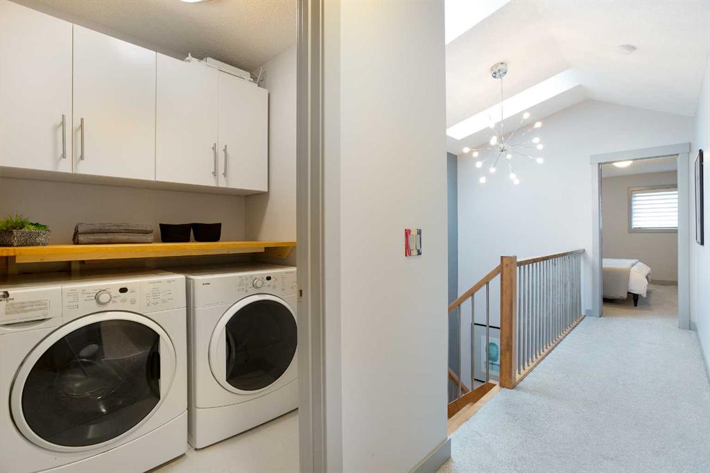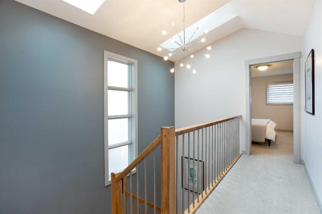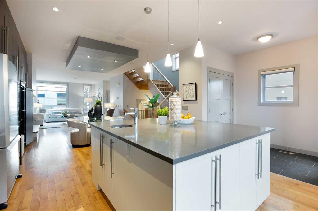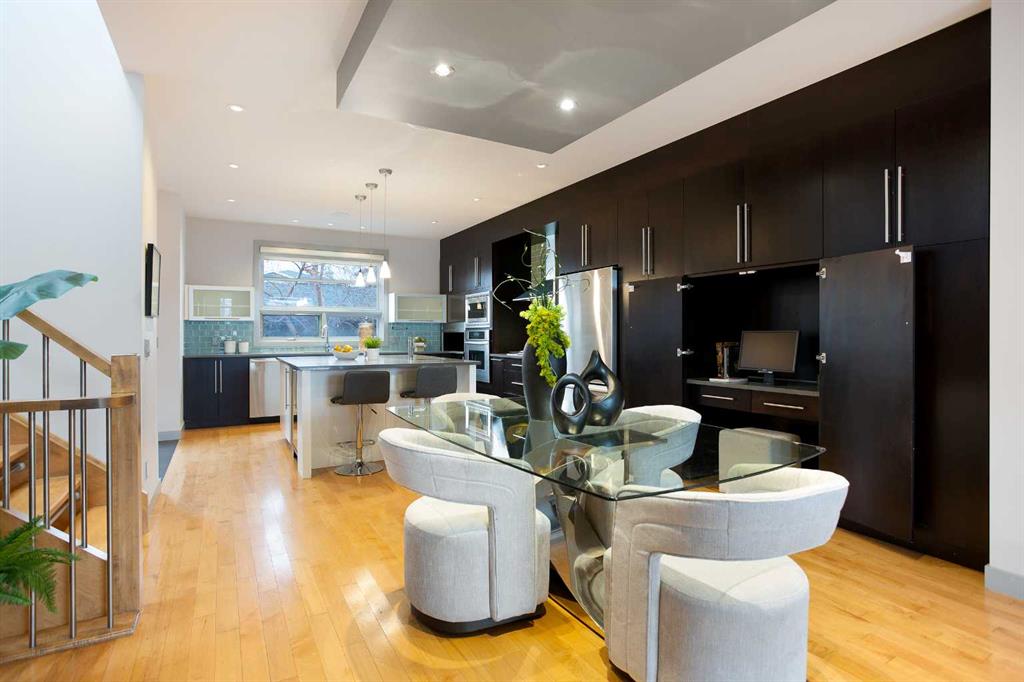 YOUR NEW HOME is an immaculate 4 bedroom contemporary home in desirable Parkdale, located across the street from Westmount Charter. The modern exterior boasts fully insulated acrylic stucco, cedar wood detailing, the aluminum-clad windows provide maximum efficiency. Inside you'll discover over 2,400 sq ft of fully developed living space, maple hardwood floors, stunning, custom open tread solid maple staircase, home audio throughout, and a wide open concept main floor. The front living room with southeast exposed sunlight from the large picture window, is a gorgeous place to enjoy. It is warmed by a cozy gas fireplace, surrounded by built ins. The central dining room leads to the magnificent kitchen where you'll find a wall of storage, including a very convenient office area that can be discretely closed off, quartz counters, espresso cabinets, and high end Thermador gas cooktop, wall-oven, an expansive center island with prep sink and a wine fridge. The gorgeous stairs lead up to vaulted ceilings with 2 skylights, a convenient laundry room, full bath and three generous bedrooms. The tranquil master retreat can host a king size bed and offers a large walk-in closet with custom built-ins and a luxurious 5pc ensuite with his/her sinks, jetted soaker tub, and glass enclosed shower. Downstairs showcases plush carpet, a flex room that can ideally be used as a workspace or library, fourth bedroom and full bath. The private fully-wired media room creates a fantastic space for a man-cave or family movie nights. The West backyard showcases a large stone patio, mature trees, and a double detached garage. Located within minutes to the Bow River pathway system, Foothills Hospital, walk to lots of restaurants, a fast commute to downtown, fast access to Stoney and the highway to the mountains. This outstanding property is ready for you to be home for Christmas! Notable updates: new roof 2024, new central air conditioner 2024.