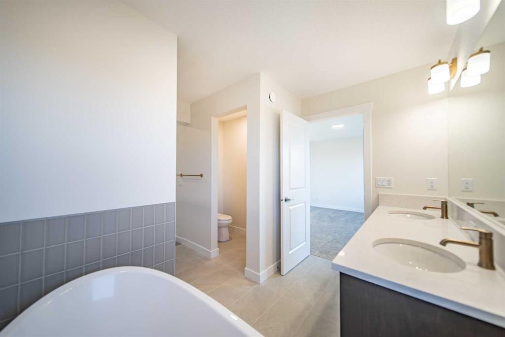 This stunning, brand-new home by award-winning Brookfield Residential is officially move-in ready and located in the highly sought-after community of Chinook Gate in Airdrie. Thoughtfully designed, this Rundle 24 model offers exceptional living with two spacious living areas, 3 bedrooms, 2.5 bathrooms, and an undeveloped basement with ample room for a future rec area, bedroom, and bathroom (with rough-ins + side entrance already in place). At the heart of the home sits a chef-inspired kitchen featuring a built-in oven range hood and microwave, and a slide-in gas range. A generous walkthrough pantry seamlessly connects the kitchen to the mudroom and the double attached garage, enhancing everyday convenience. Open to both the dining area and main living space, this kitchen is designed for effortless flow -ideal for family living and entertaining alike. A wall of west-facing windows along the back of the home fills the main floor with natural light, while the dining area’s patio doors provide direct access to the backyard. A cozy electric fireplace adds warmth and comfort to the living room, creating the perfect atmosphere for winter evenings. Beautiful natural wood railings with iron spindles lead to the upper level, where a central bonus room separates the luxurious primary suite from the secondary bedrooms, ensuring both privacy and functionality. The spacious primary bedroom boasts a spa-inspired 5-piece ensuite complete with dual sinks, a soaker tub, a walk-in shower, and an impressive walk-in closet. Two additional well-sized bedrooms, a full bathroom, a large linen closet, and a dedicated laundry room complete the upper floor. The basement, offering nearly 800 sq. ft., is a blank canvas ready for your personal vision - whether that’s a home theatre, gym, additional bedrooms, or all of the above and the bathroom rough-ins are already in place. Situated on a bright and sunny lot spanning nearly 4,000 ft2 in size with ideal west backyard exposure, this is the perfect home both inside and out! With both Builder Warranty and Alberta New Home Warranty, you can purchase with confidence. Fully finished, beautifully designed, and move-in ready, this exceptional home in Chinook Gate is perfect for a growing family looking for comfort, style, and a vibrant community.