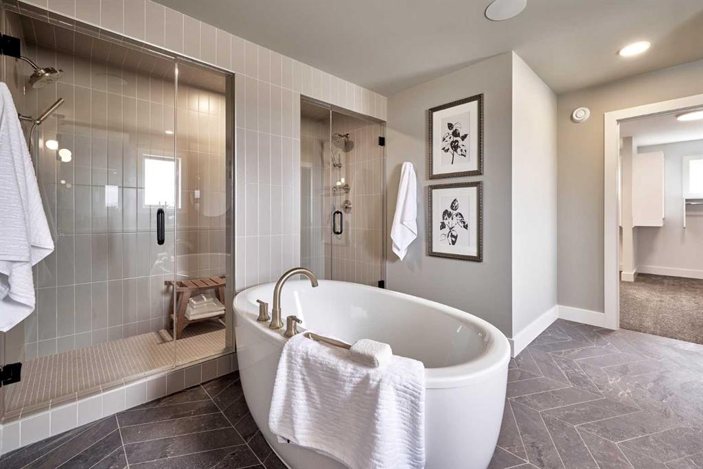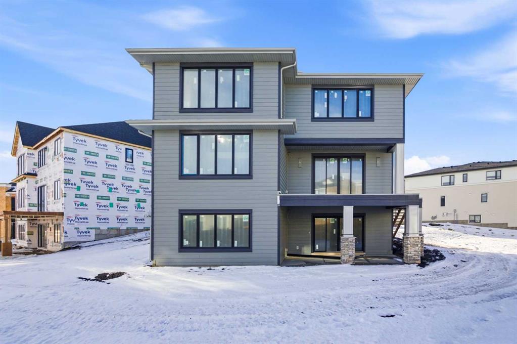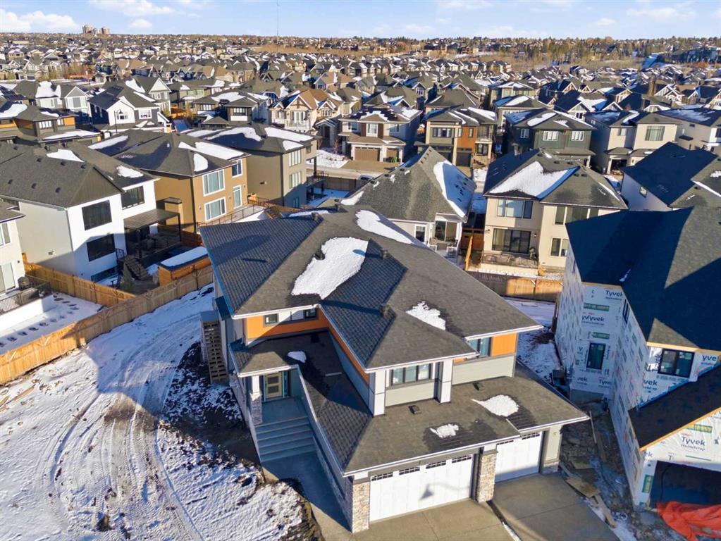 **4,745 TOTAL SQ.FT | 6 BEDS | 5 BATHS (2-ENSUITES) | FINISHED WALKOUT | 3-CAR GARAGE | PIE LOT** Located on a quiet cul-de-sac in Aspen Summit, this brand-new executive walkout by Crystal Creek Homes sits on a generous pie-shaped lot and includes a triple-car garage, premium finishes, and a fully developed lower level. Selections were inspired by Crystal Creek’s previous showhome (as seen in photos). The main floor includes an open-to-above great room that brings in natural light, a gourmet kitchen with a gas range, custom hood fan, premier appliances, a prep kitchen, and a large pantry. The dining area features built-in cabinetry and a beverage centre, and the spacious main-floor office provides a quiet place to work or study. Upstairs, the primary suite offers a spa-inspired ensuite and an oversized walk-in closet with direct access to the laundry room. Three additional bedrooms complete this level—one with its own ensuite and two connected by a Jack and Jill bathroom—along with a large bonus room overlooking the great room below.The walkout basement adds two more bedrooms, a full bathroom, a rec room with a fireplace and wet bar, and a games area that opens to a broom-finished concrete patio. Mechanical highlights include dual furnaces, air conditioning, a water softener, radon rough-in, and full builder warranty. Everyday comfort is built in at every level. Aspen Woods is known for its estate homes, established parks, top-rated schools, and close access to downtown, West District, Aspen Landing, and the Rockies. Homes with this level of scale, finish, and location are rarely available in Aspen Woods. Book your showing before it's gone. (Photos are of the builder's previous showhome with similar layout and finishes).