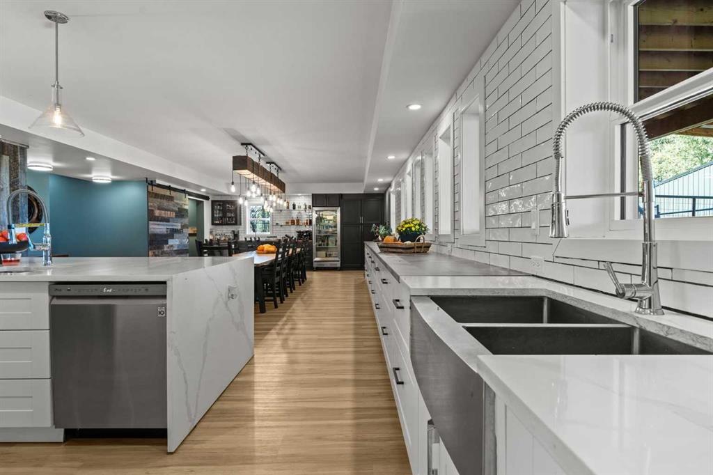 breakfast bar, built-in features, ceiling fan(s), chandelier, closet organizers, double vanity, high ceilings, kitchen island, low flow plumbing fixtures, natural woodwork, no smoking home, open floorplan, pantry, quartz counters, storage, vinyl windows, walk-in closet(s), wired for data, wired for sound