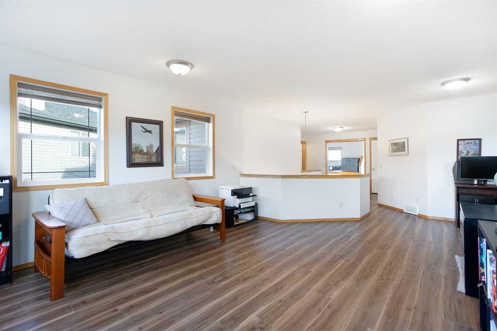 Upstairs, you’ll find three generous bedrooms, a full bath, and a spacious bonus room perfect for movie nights or a kids’ play area. The primary suite offers a private escape with a spa-inspired ensuite and elevated views. A unique retreat room off the primary is a standout feature, ideal as a reading lounge or quiet space. The walkout basement adds flexibility with two additional bedrooms, a large recreation room, full bathroom, and ample storage—perfect for guests, teenagers, or multigenerational living. Recent vinyl flooring continues into the basement for a clean, modern finish.