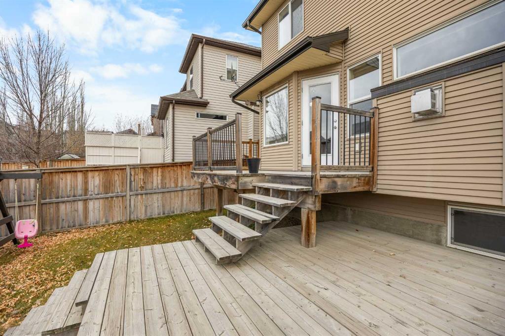 The spacious Living Room is anchored by a cozy gas fireplace and flows seamlessly into the Kitchen with a centre island and raised eating bar, pantry, and abundant cabinetry. The Dining Room opens to a two-tier deck and a generous South East facing landscaped backyard, perfect for entertaining or enjoying quiet mornings outdoors. The main floor is complete with a convenient powder room, main-level laundry, and a double attached garage.