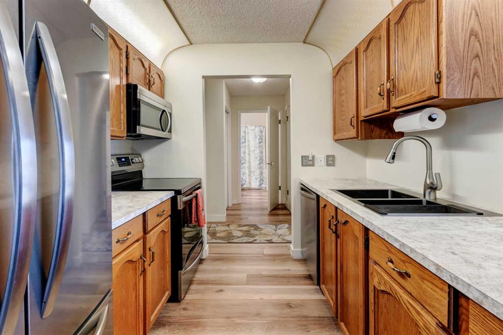 Located beside the Woodside Golf Course and just moments from all the amenities you need, this 55+ condo offers comfort, convenience, and a beautifully updated interior you’ll love coming home to. Step inside to find two inviting bedrooms and a bright 4-piece bathroom, complemented by a series of upgrades completed within the last three years. Enjoy stylish vinyl plank flooring throughout, fresh modern paint, updated laminate countertops, a deep stainless-steel sink, and a full stainless-steel appliance package in the kitchen. The spacious primary bedroom includes a walk-through closet with direct access to the bathroom—an ideal blend of privacy and convenience. An open-concept living and dining area creates a warm, welcoming space for hosting family and friends. Step out from the living room onto your concrete patio, offering easy access to the serene courtyard and gazebo—perfect for morning coffee or relaxing afternoons. The laundry room in this unit has a stackable washer and dryer and also allows for some storage. Owners in this complex also enjoy great shared amenities, including a second-floor activity room with a reading library and gym equipment, plus a formal dining and gathering area in the main foyer. Pets are welcome with board approval, making this a truly inviting place to call home. Whether you’re downsizing or looking for a quiet, low-maintenance lifestyle close to everything, this complex is the perfect fit. Come see for yourself—you won’t want to miss this one!