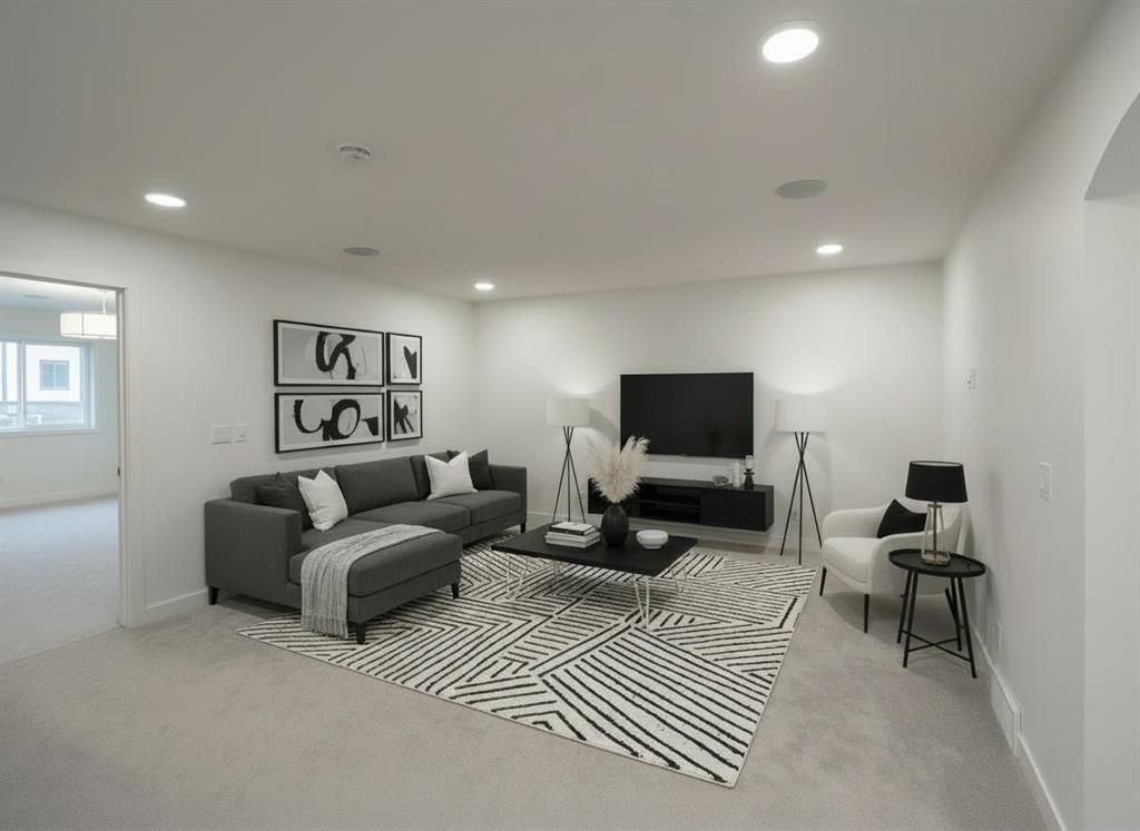 The main level is bright and welcoming, featuring a spacious open-concept layout with large windows that fill the home with natural light. The dining area connects seamlessly to the stylish great room, creating an ideal setting for everyday living and gatherings. A main-floor den offers the perfect space for a home office or extra bedroom, conveniently paired with a full 3-piece bathroom on the same level.