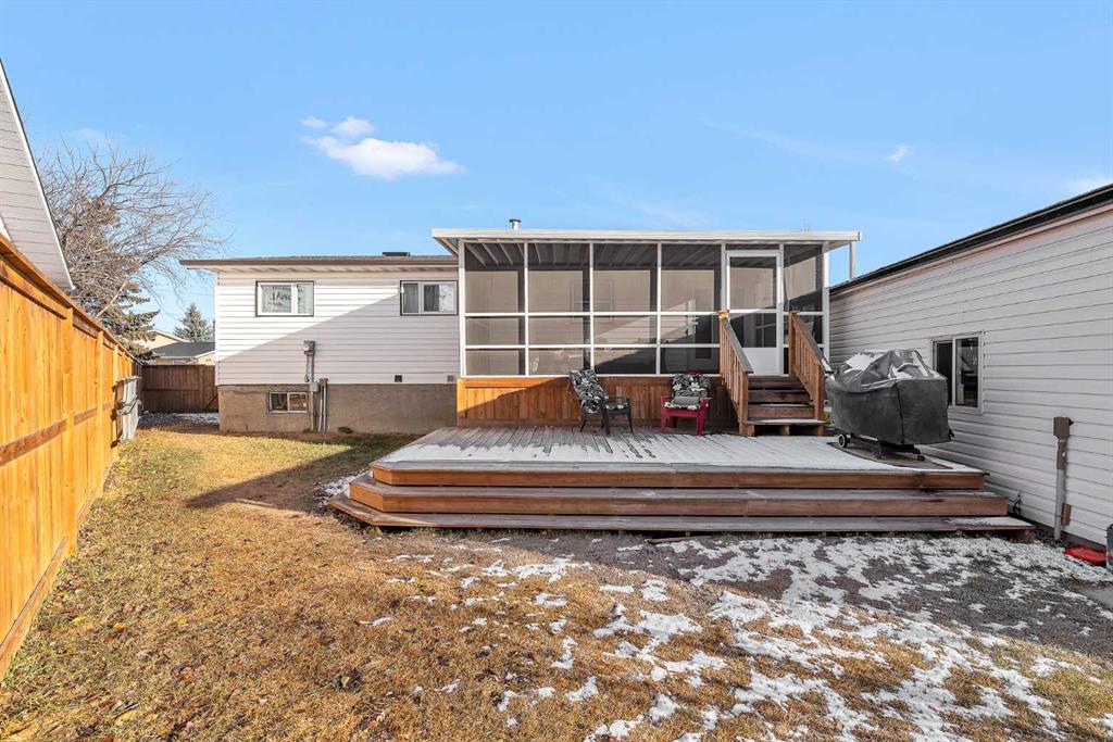 ****NEW PRICING ****Fantastic opportunity in a great neighborhood . This bi-level home is located on a massive pie lot and has had substantial renovations which include both kitchens , all 3 bathrooms , newer lvp flooring , newer windows , newer garage ( almost 25 ft x 20 ft ) with oversized parking pad for additional parking , room for an RV . A newer fence encompasses the large lot . A total of 5 bedrooms ,3 on the main including a lovely primary suite with walk in closet and 5 piece luxury ensuite . The main level boasts an open plan with Island kitchen , newer appliances , larger windows , easy access to the enclosed , south facing sun room ( 20 ft x 10 ft ) large windows and a step down to ground level patio . The lower level is bright and inviting with 2 full bedrooms , an updated 4 piece bath , separate laundry room . The spacious open plan has an island kitchen and breakfast bar , offering plenty of counter space and cupboard space . A cozy living room caps off this well designed lower level . This is a great opportunity for a full rental ( up and Down ) or live up , rent down .