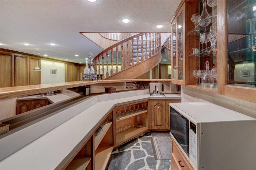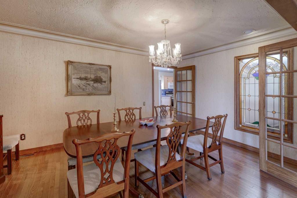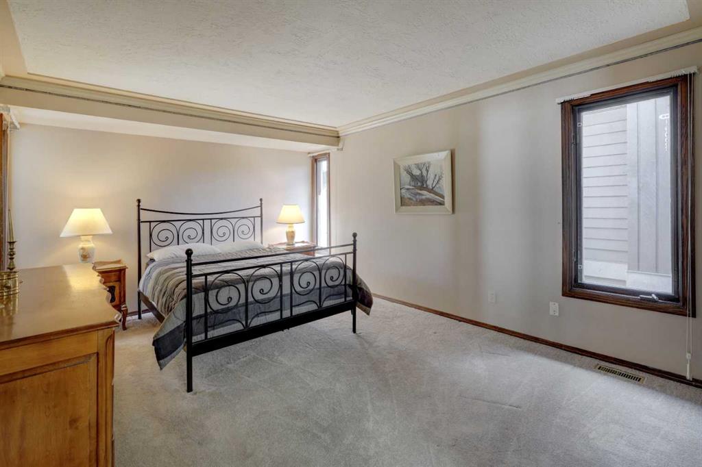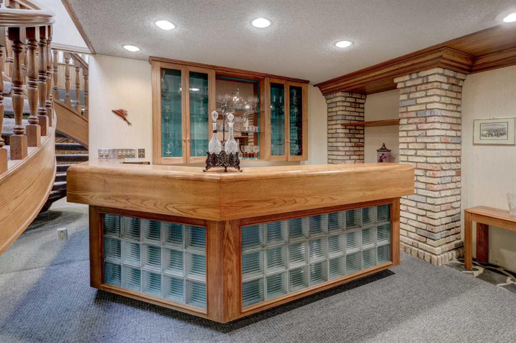 Welcome to this beautifully maintained, custom-built bungalow tucked away on a quiet street in the highly coveted community of Edgemont. From the moment you step inside, the spacious front entry & striking curved staircase set the tone for a home that balances elegance with everyday comfort. The thoughtfully designed floor plan features a bright formal living room & dedicated dining area—perfect for entertaining family & friends. At the heart of the home, the updated kitchen offers newer cabinetry, a generous pantry, a central island, & a cozy breakfast nook that seamlessly opens into the inviting family room, complete with a charming brick-facing fireplace. The main floor also boasts a generous primary retreat with a private 3-piece ensuite & three closets, along with two additional well-sized bedrooms & a full bath. Downstairs, the fully finished basement expands your living space with an open rec/games room (pool table included!), a second fireplace, wet bar, den/office, a&nd plenty of storage. Step outside to your private backyard oasis—beautifully landscaped with lush garden beds, a large deck for summer gatherings, & a durable metal fence. Notable updates include: a new hot water tank (2025), brand-new basement carpet (2019), hardwood in the main floor hallway, newer shingles & skylight (approx. 12 years), a new garage door, & a double attached garage. With its spacious layout, timeless character, & prime location in a mature, family-friendly neighbourhood with top-rated schools, amenities, & green spaces just steps away, this home truly has it all.