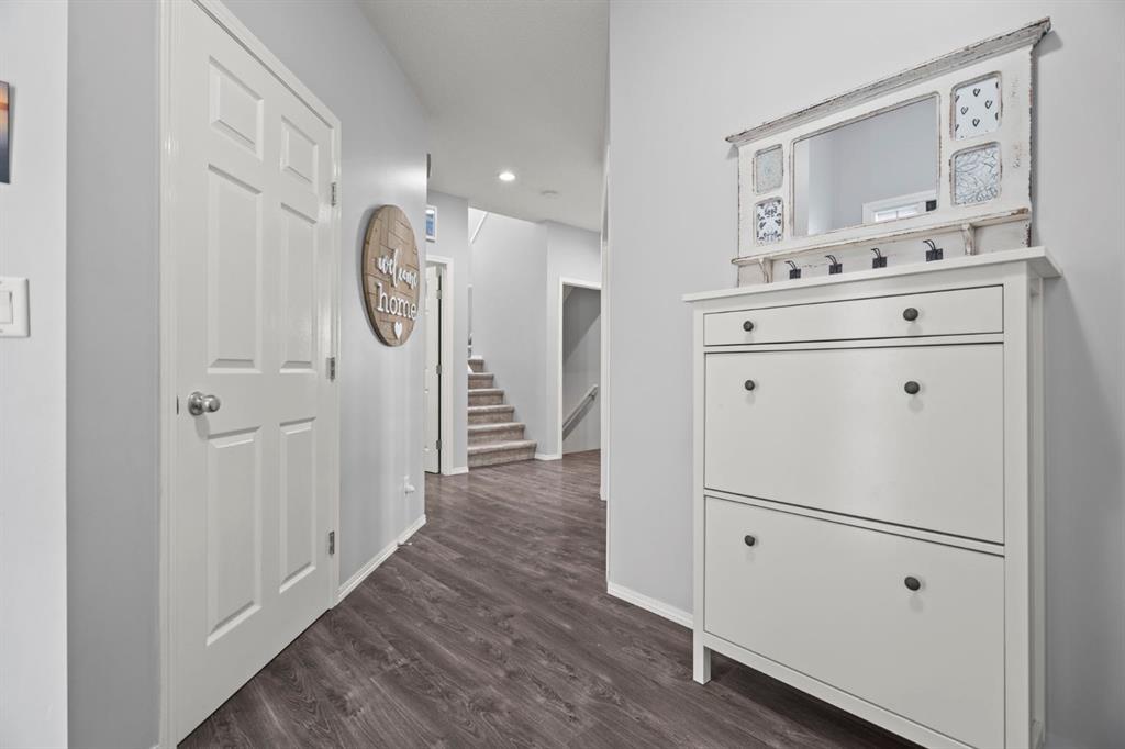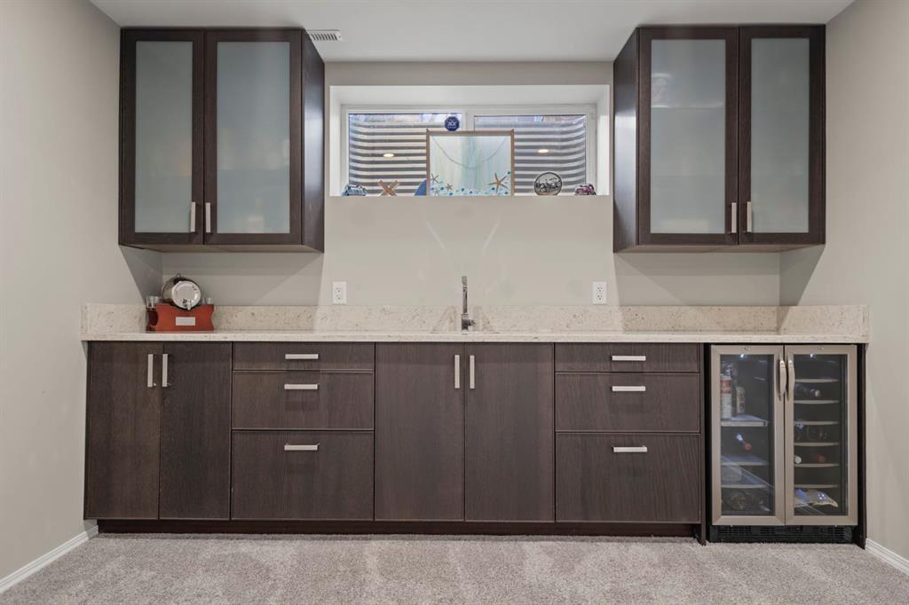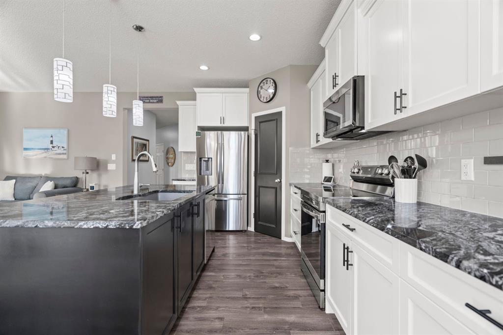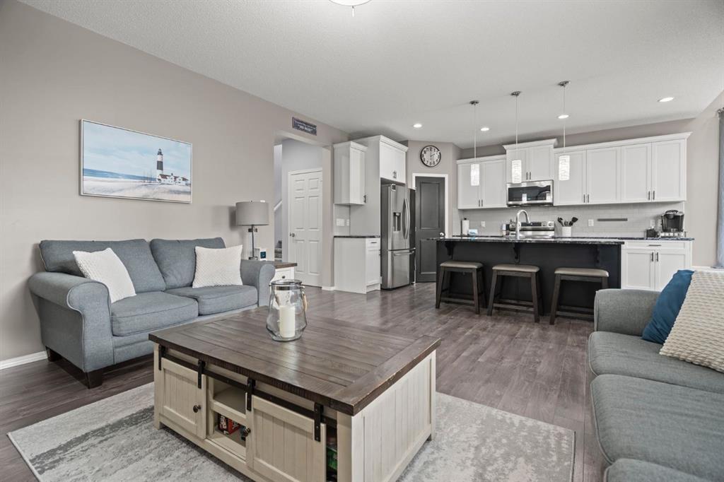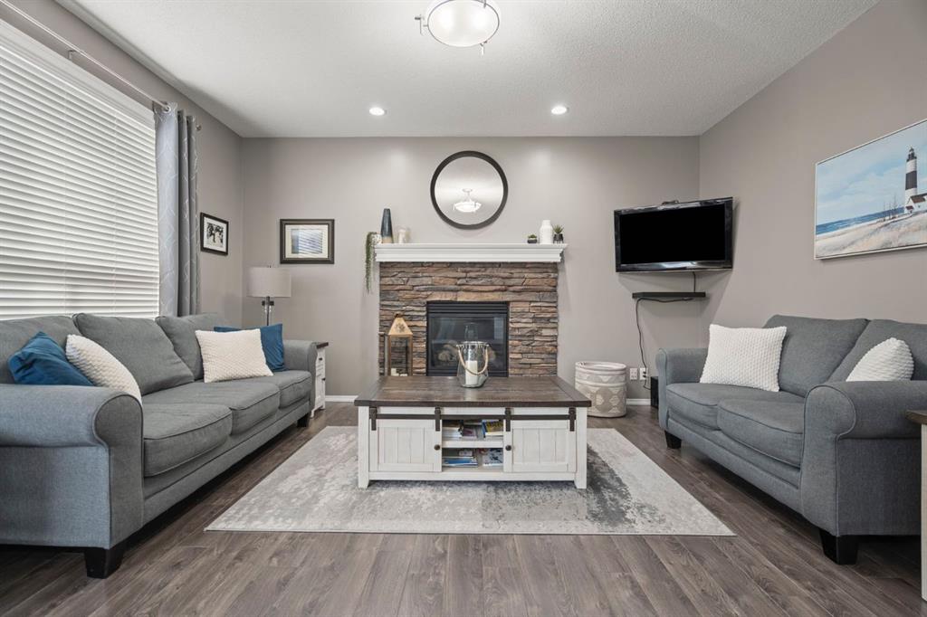 OPEN HOUSE SUNDAY NOVEMBER 30TH 1:00PM-3:00PM! Welcome to this beautifully maintained 2-storey home in the highly sought-after community of New Brighton, offering over 3,090 sq ft of developed living space with 4 bedrooms, 3.5 bathrooms, a main-floor office, upper bonus room, and a fully finished basement. Thoughtfully designed with family living in mind, this home blends open-concept function with warm and inviting finishes throughout. The bright main floor features large windows and a spacious living room centered around a cozy gas fireplace. The well-appointed kitchen includes quartz countertops, a large island with seating, stainless steel appliances, subway tile backsplash, and a walk-in pantry, making it the perfect space for everyday cooking or entertaining. The dining area comfortably accommodates family gatherings and opens directly to the backyard for seamless indoor-outdoor living. Completing the main level is a private office with French doors, a 2-piece bathroom, and a mudroom off the garage that keeps busy routines organized. Upstairs, you’ll find a large bonus room ideal for movie nights or a play space, along with three generously sized bedrooms, including a spacious primary suite with a walk-in closet and 4-piece ensuite featuring a soaker tub and separate shower. The upper level also includes a full bathroom and a convenient laundry room with cabinetry. The fully developed basement expands your living space with a large recreation room, a beautiful wet bar with quartz counters, glass-front cabinets, sink, and beverage cooler, a fourth bedroom, and a stylish 3-piece bathroom with oversized tiled shower perfect for guests or teens. Outside, enjoy a large stamped concrete patio, built-in fire pit, play structure, and storage shed, all within a fully fenced and landscaped backyard ideal for outdoor entertaining and family fun. Located close to parks, pathways, schools, and the New Brighton Residents Association amenities, plus easy access to shopping, dining, South Health Campus, Deerfoot and Stoney Trail. The perfect place to call home!