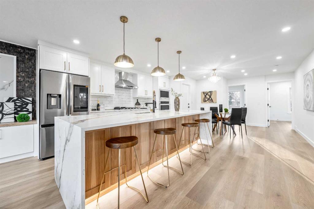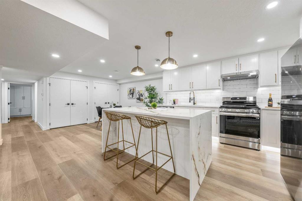 FULLY RENOVATED with all City Permits, Welcome to this stunning Front garage bungalow home that has been beautifully renovated in an oversized lot on a nice quiet street in the desirable community of Willowpark. This stunning bungalow has undergone a top-to-bottom renovation to the highest standards, ensuring that every detail has been carefully crafted to its perfection. You are welcomed by a huge open concept living area with 5 BEDROOM/ 3 Bathroom/2 Kitchens in the house. As you enter the home, you will immediately notice the durable vinyl plank flooring that flows throughout the main living space, creating an inviting and modern ambiance. The open concept living area boosts a spacious living room with large windows that allows natural light to flood in and brighten up the space with a cozy modern fireplace. The kitchen is a chef's dream, complete with stainless steel appliances, and a large quartz countertop with a great size island is perfect for entertaining guests. The main level features a primary bedroom with ensuite and 2 more bedrooms, with a full bathroom conveniently located nearby. The legal basement suite has two more bedrooms, full bathroom, separate laundry and a kitchen with separate entrance, making it an ideal space for guests or Airbnb to generate extra income. Come and experience the beauty of this home for yourself. CLOSE TO TRANSIT, SHOPPING CENTER, PARK and SCHOOLS. Renovation completed within city permit compliance. Book your showing Today!