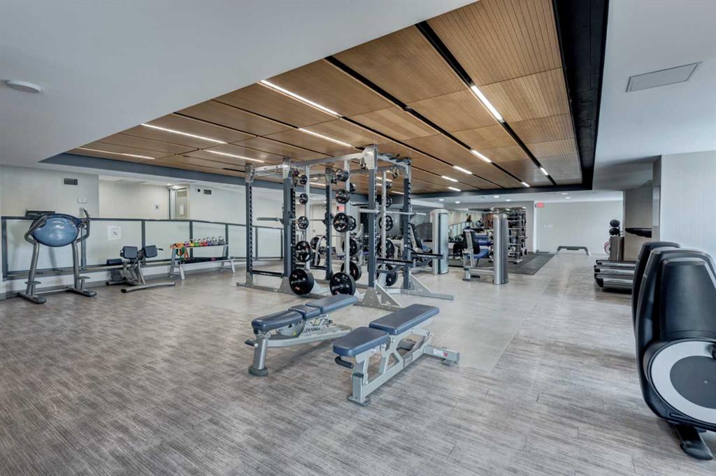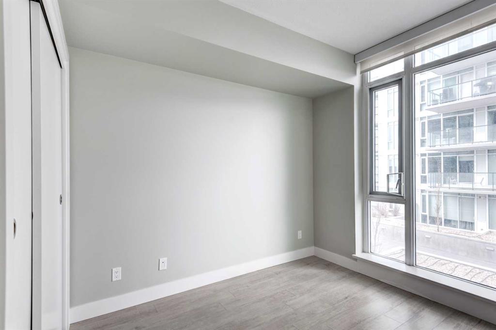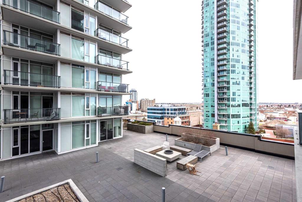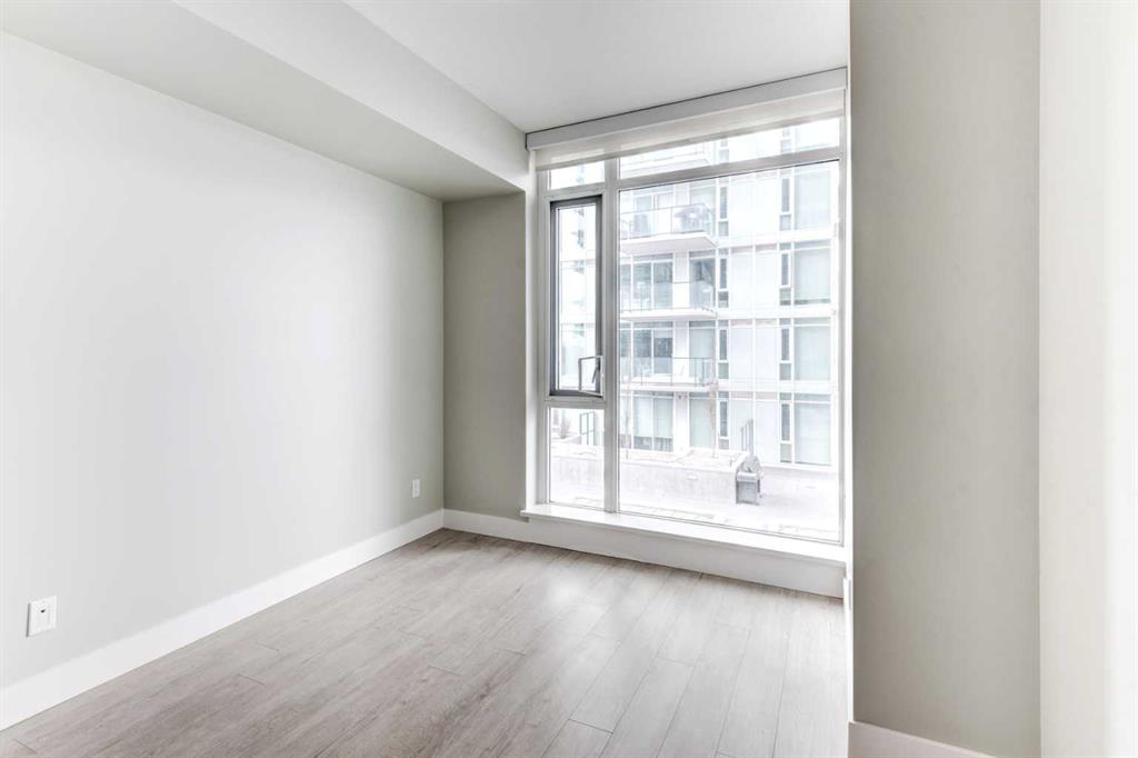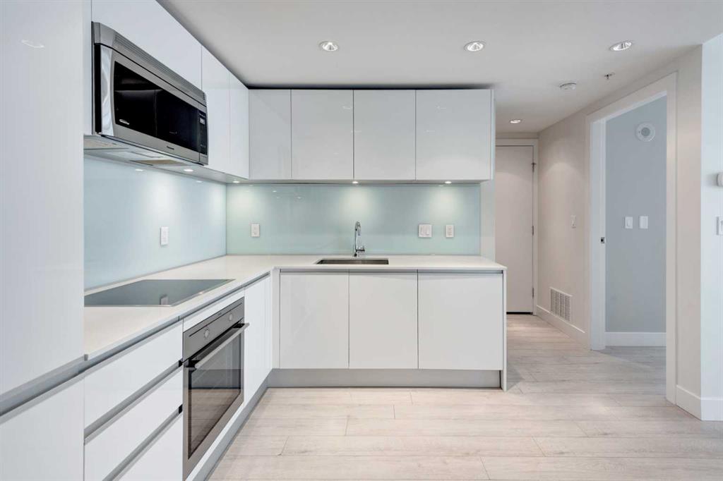 Floor-to-ceiling windows in both the living room and bedroom fill the home with natural light and showcase an open, airy layout. The contemporary European-inspired kitchen features sleek cabinetry, quartz countertops, glass backsplash, under-cabinet lighting, and a fully integrated stainless steel appliance package. Step onto your private balcony and take in impressive views of the Calgary Tower, downtown skyline, and cityscape. Additional highlights include in-suite laundry, central A/C, titled underground parking, and a separate assigned storage locker. Residents of The Guardian enjoy premium amenities: 24-hour concierge, a fully equipped fitness centre, resident lounge, garden terrace, bike storage, workshop, and pay-and-park visitor parking. Quick possession is available.