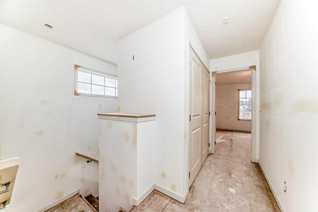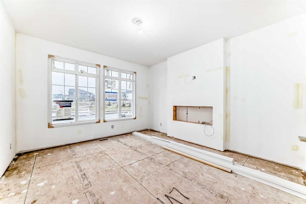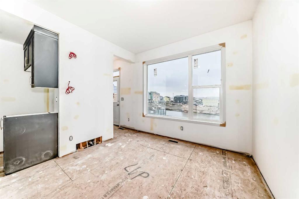 Welcome to this modern Morrison Homes 3-bedroom duplex in the sought-after community of Glacier Ridge. The main floor offers an inviting living area with an electric fireplace, knock-down ceilings, vinyl flooring, and a stylish kitchen complete with a central island, pantry, quartz countertops, a built-in microwave, and a fridge with a water line. A half bath on this level provides added convenience for guests. Upstairs features three generous bedrooms, including a primary suite with its own 4-piece ensuite, plus a second 4-piece bathroom and a dedicated laundry area. The basement includes a separate side entrance, a 9’ foundation, and rough-ins for a future suite (a secondary suite would be subject to approval and permitting by the city/municipality) offering excellent potential for added living space or income generation. Outside, you’ll find a deck with a built-in gas line for your BBQ, plus a gravel parking pad providing easy off-street parking. Glacier Ridge Village is expected to open in 2026 and will feature a skating ribbon, walking paths, basketball courts, an all-ages playground, spray park, tennis court, ice rink, patio spaces, firepit, and a toboggan hill. Inside, residents will enjoy a gymnasium, rentable rooms for programs and private events, banquet space, and welcoming seating and gathering areas. Located in one of Calgary’s newest and most desirable communities, this home blends modern comfort with exceptional future amenities.