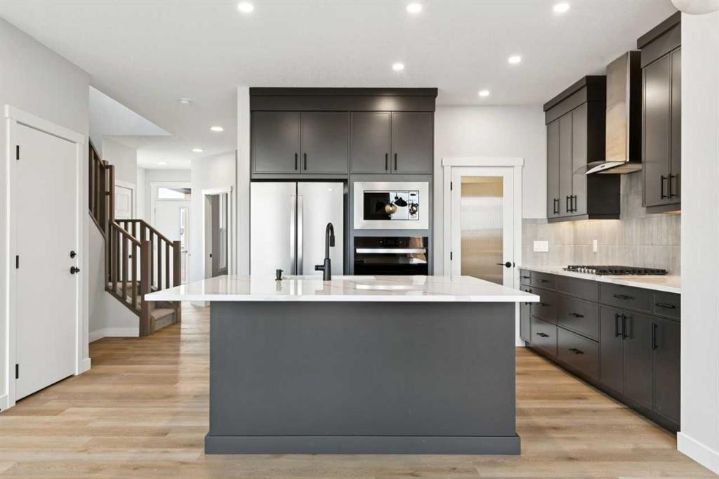 Trico Homes, the heart of home building. Find your ideal home in your favourite community in Calgary & Surrounding Area. The Concord offers 2,305 sq ft of open-concept living with a main-floor bedroom and full bath, plus a 2-bedroom legal suite—ideal for extended family. Upstairs, three secondary bedrooms each feature a walk-in closet, along with a shared bath, laundry, and a luxurious primary bedroom with a walk-in closet and 5-piece ensuite. A central bonus room provides space for relaxation or entertainment. Upgrades include engineered hardwood, 9-ft ceilings, 42-inch upper cabinets, LED pot lights, knockdown ceilings, and modern fixtures. Located in Heartwood, a southeast Calgary community with tree-lined streets, walking paths, green spaces, and future amenities. Photos are representative.