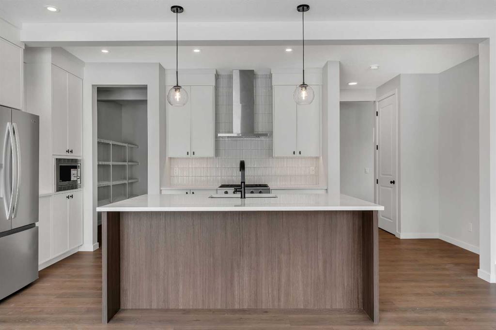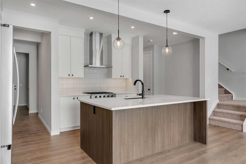 Welcome to 108 Creekview Manor SW. Built by repeated Award-Winning, Baywest Homes. Perfectly positioned just one home away from a playground and only steps from a stunning natural reserve and pathway system, this exceptional property blends location, luxury, and thoughtful design. From the moment you arrive, the home’s impressive 26' width sets it apart, offering a spaciousness you can feel. This wider design allows for a generous 21' x 21' garage, perfect for vehicles, hobbies, and all the gear that comes with an active lifestyle. With a side entry and basement plumbing rough-ins, the lower level is a blank canvas ready for future possibilities—whether that’s a suite, a studio, or the entertainment space you’ve always imagined. A secondary suite would be subject to approval and permitting by the city/municipality. Step inside, and the main floor welcomes you with warmth and flexibility. A main-floor bedroom with a full 3-piece bath is ready for guests, family, or the perfect work-from-home sanctuary. Hosting will feel effortless with a spacious rear deck ideal for summer dinners. At the heart of the home lies a kitchen crafted to inspire. The two-toned cabinetry, chimney hood fan, and microwave tower create a beautifully cohesive space, while quartz countertops, under-cabinet lighting, and a 4-bin waste pullout add function to the flair. Cook with confidence using upgraded appliances including a gas range, hidden-control dishwasher, and French door fridge with water, ice, and bottom freezer storage. A large pantry completes this gourmet hub—because every great home starts with a great kitchen. Follow the wood-and-metal railing up to the second floor, where comfort and convenience continue to shine. Here, you’ll find four well-sized bedrooms, including walk-in closets in Bedrooms 2 and 3—a rare and welcome luxury. The bonus room offers space for movie nights, playtime, or cozy unwinding, while the upper laundry room, complete with rough-in for a future sink, makes daily routines feel effortless. Retreat to the primary suite, a calming escape featuring double sinks, a relaxing soaker tub, and a separate shower designed for moments of quiet indulgence. Even the main upstairs bath offers double sinks, ensuring mornings flow smoothly for everyone. Nestled alongside the stunning Sirocco Golf Club, Creekview offers a perfect balance of nature and convenience for those who love life on the greens. For all your shopping needs Township Shopping Centre in nearby Legacy boasts over 50 retailers and services, including popular destinations like Sobeys, Starbucks, Cobs Bread, The Canadian Brewhouse, Winners, and more. Families will appreciate the planned future school site, conveniently located near the community entrance, ensuring a short and safe walk or bike ride for students. Creekview also features numerous parks, playgrounds, and sports fields, offering ample outdoor recreation opportunities for residents of all ages.