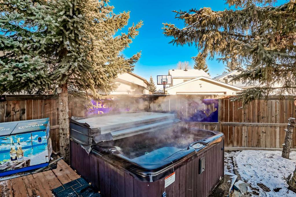 One of the standout features of this home is the large pie-shaped backyard—a true outdoor retreat. With an extended deck and a hot tub, it's ready for summer BBQs, weekend gatherings, or relaxing evenings under the stars. There’s still plenty of room for kids and pets to play, or for gardening enthusiasts to make it their own.