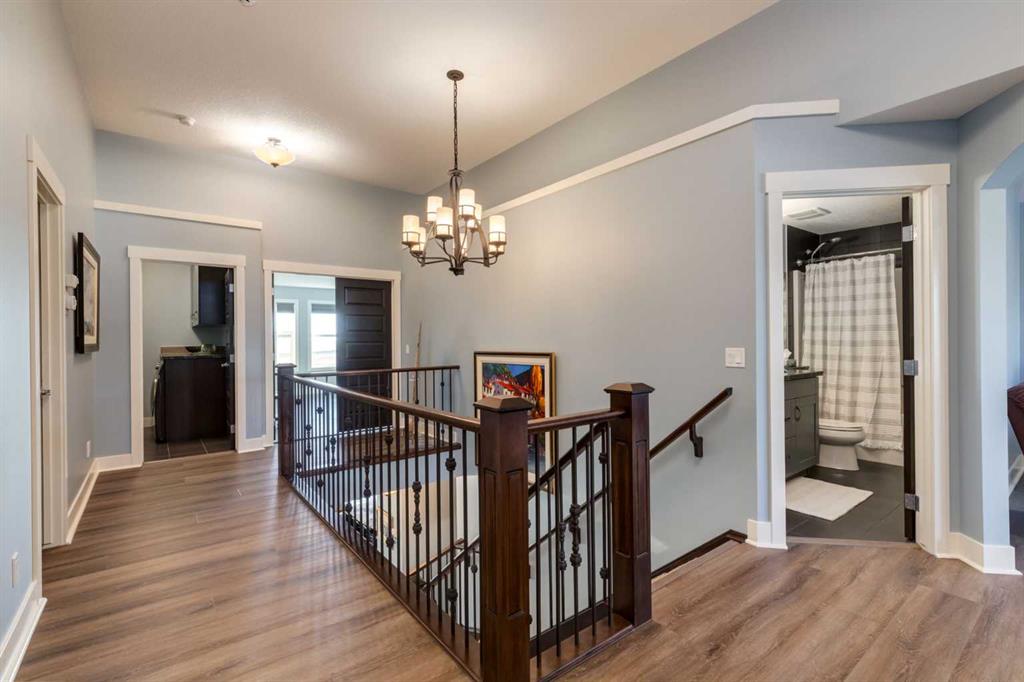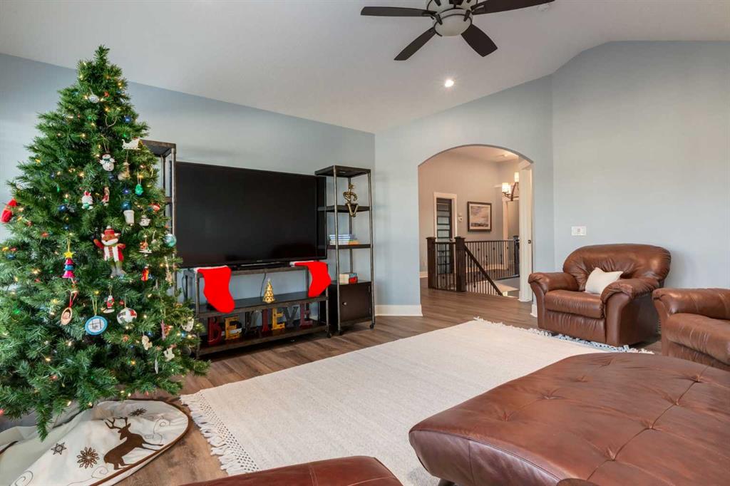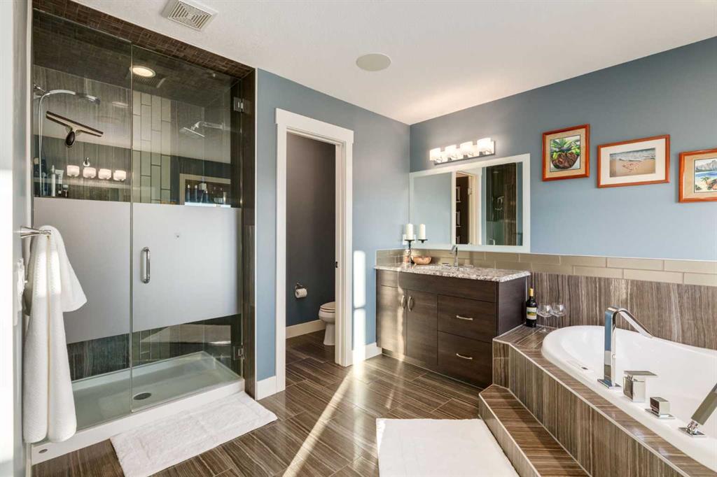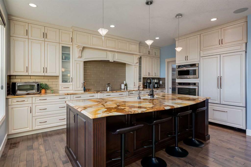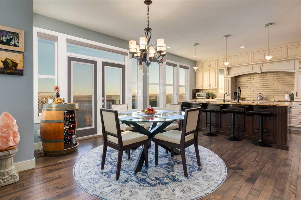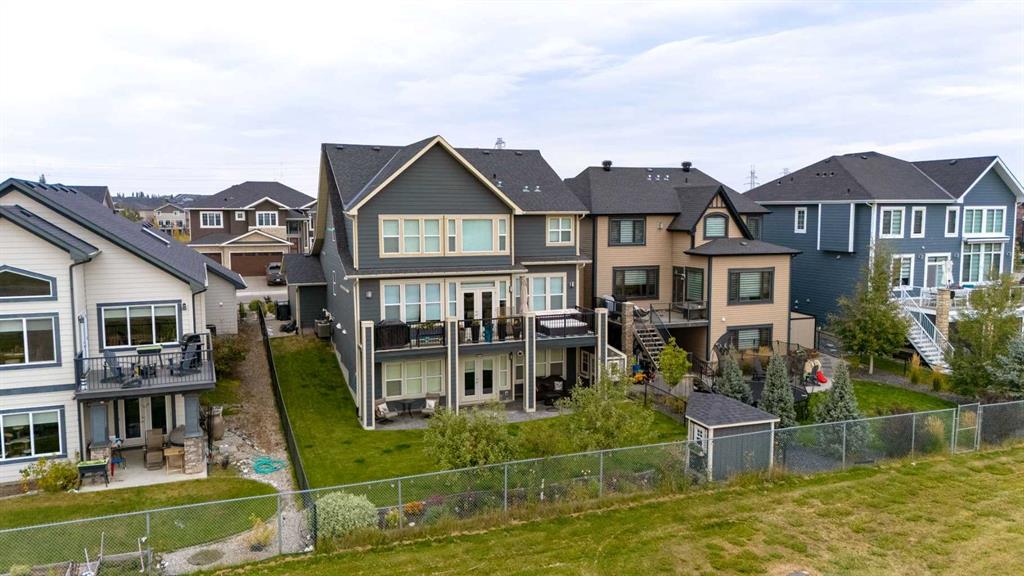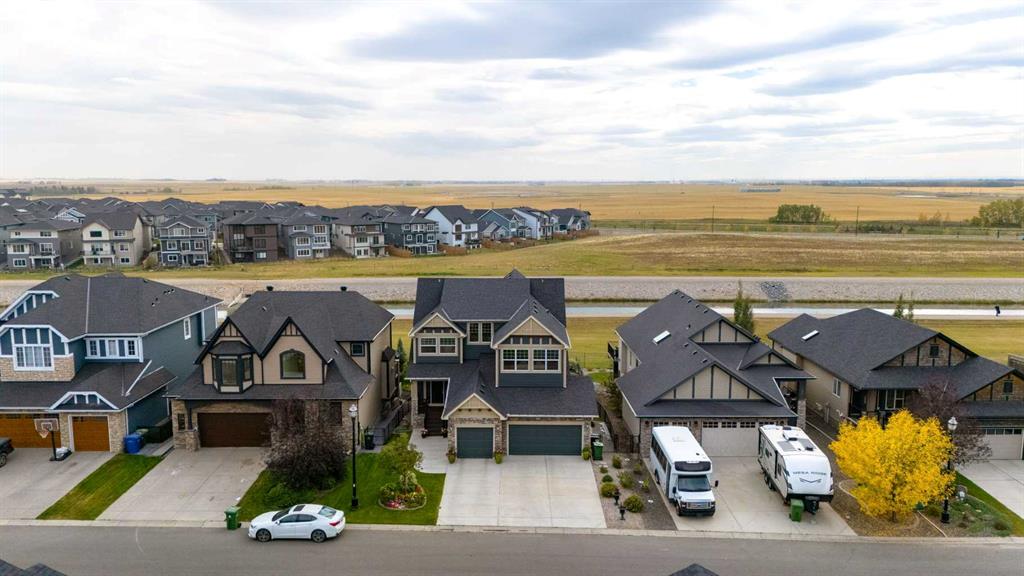 Welcome home to 308 Rainbow Falls Way! This custom built home offers over 3900 SF of living space over 3 levels and has upgrades done through out; such as the original floor plan being extended by 3 feet, plumbing upgrades, spray foam insulation to rim joist, upgraded electrical panel and upgraded granite counters through out, just to name a few. The main floor boasts of hardwood flooring and has an excellent floorplan for family life featuring a front flex room - perfect for a home office and living room with cozy fireplace open to the kitchen and dining area great for entertaining. The custom kitchen is a chef's dream with a extra large central island and seating, petrified wood granite counters, stainless steel appliances, an abundance of cabinets, plus the dining area with access to your south facing balcony overlooking the green space and the canal walkways. There is a walk thru pantry and 2 piece bath to complete this level. The open riser staircase leads to the upper level where you will find the family room with vaulted ceilings, the primary suite with warm cork floors with upgraded subflooring and a massive walk-in closet with custom organizers by Home Solutions , and spa like ensuite with double vanities, soaker tub and separate shower. There are also 2 good sized bedrooms, the main bath and laundry room. The walk-out basement is fully finished and offers a large rec room, 4 piece bath and 2 more bedrooms, one which has an ensuite - perfect for guests. From the rec room you have direct access to the patio and your fully fenced private south facing back yard with relaxing views of the greenspace and canal. There are 2 custom built sheds by Shed Solutions for all your gardening needs. The attached 3 car garage has custom shelving and provides plenty of parking for you and your guests. You are just steps away from the pathways leading to Rainbow Falls pond and Chestermere Lake. Don't miss out on this great family home located within an easy commute of downtown Calgary and great access to major thoroughfares!
