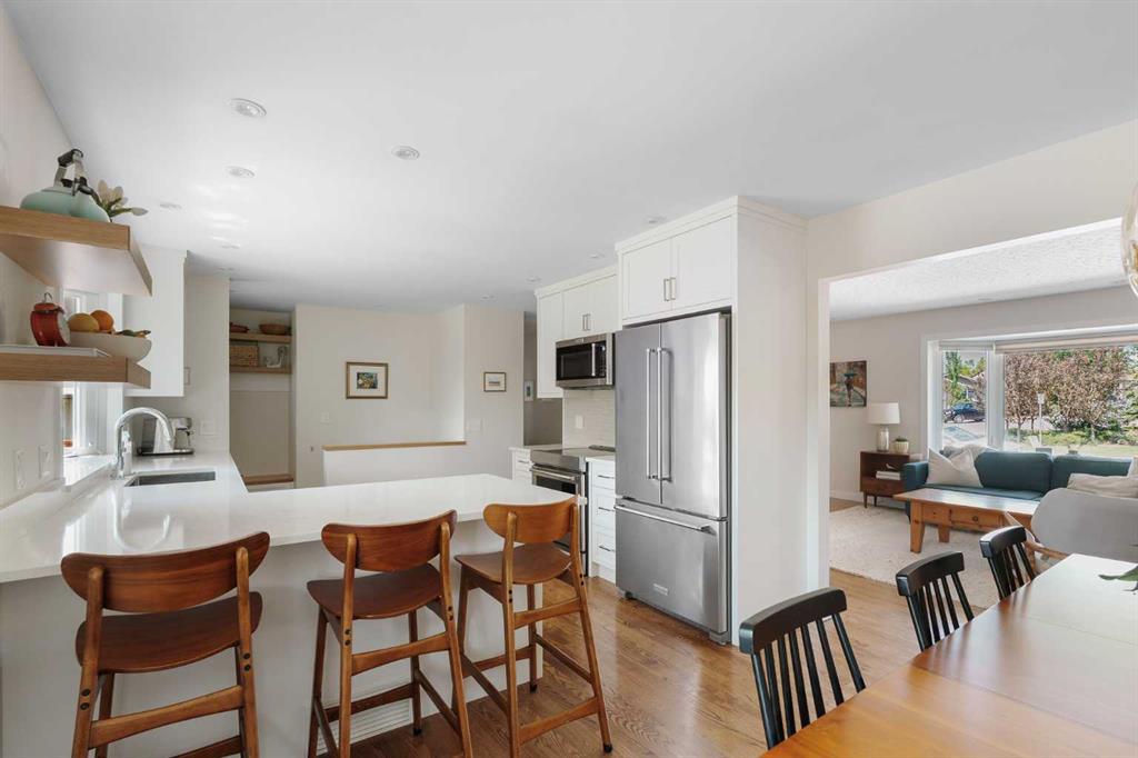 This updated bungalow situated in St. Andrews Heights, one of Calgary’s most established inner-city communities, spans a 6,049 sqft southwest lot. Inside you’ll see where timeless character meets elevated modern finishes. The redesigned kitchen features a peninsula layout, quartz countertops, stainless steel appliances, a garden window, white cabinetry, glossy subway tile, and open shelving. A custom mudroom area with built-in cabinetry sits just off the kitchen. Hardwood flooring flows across the main level, leading to three well-appointed bedrooms and a renovated full bath with quartz counters, coordinated cabinetry, and a sleek tiled shower. The lower level offers a spacious, inviting rec room anchored by a tiled gas fireplace, along with a combined laundry/bathroom area for added practicality. Outside, the private yard is framed by mature trees and features a hardscaped patio ideal for relaxed outdoor living. Set on a quiet, tree-lined street, this 1,271 sq ft bungalow enjoys a premier location steps from the Foothills Medical Centre, Alberta Children’s Hospital, University of Calgary, and McMahon Stadium. Residents benefit from nearby schools, such as Maria Montessori School and Briar Hill Elementary, off-leash parks, Bow River pathways, tennis and basketball courts, a skating rink, and sledding hill. With a 10-minute commute to downtown, easy access to local shops and restaurants, and a direct route to the mountains, this home offers an exceptional blend of lifestyle, convenience, and comfort.