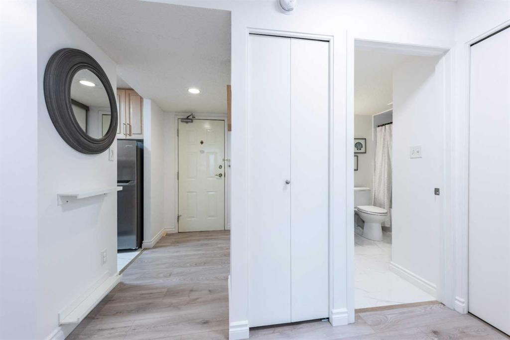 Prime WEST facing 2 bedroom renovated suite with UNDERGROUND parking and IN-SUITE LAUNDRY, in desirable Haysboro – you’re going to love all this quiet, concrete, well managed 18+ adult building has to offer. The suite’s been designed for comfort and convenience and is beautifully renovated and updated, offering nearly 900 SF and showcasing a HUGE west facing balcony. The updated eat-in kitchen showcases gorgeous marble tile flooring, ample cabinets, pull out drawers and storage, stainless steel appliances & ceiling fan. Vinyl plank flooring is featured throughout the main living areas and bedrooms. The spacious living room and dining room is bright and sunny, with a large patio door that leads to the west facing balcony. Primary bedroom easily accommodates king-sized furniture. Renovated and stylish 4 pc bath offers a soaker tub and designer fixtures. Second bedroom offers great flex space and insuite laundry & storage room complete the suite. Condo fees include all utilities—electricity, heat, water, sewer, parking and access to building facilities. The convenience of underground parking is yours, plus the building offers owners amazing amenities & features. The exercise room and outdoor terrace are on the same floor as the suite, there is a main floor social room for family & social gatherings with a large TV, kitchenette, coffee station, puzzle tables, shuffleboard & library. On-site concierge (available 4 hours a day, 5 days a week), bike & tire storage and extra shared laundry is available on each floor. Take advantage of this great location - Walking distance to the LRT station & close to shopping, restaurants, & easy access to major traffic arteries. Book your viewing today!