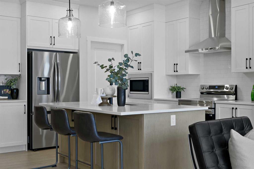 Welcome to 80 Fireside Common, a beautifully designed new build in the welcoming community of Fireside, Cochrane. Offering 2,182 sq. ft. of thoughtfully planned living space, this home combines modern comfort with small-town charm. The main floor features an open-concept design with 9’ ceilings, a spacious great room anchored by a modern fireplace, and a chef-inspired kitchen complete with quartz countertops, a beautiful two-toned cabinet design with stylish black hardware and a walk-in pantry. The dining area flows seamlessly into the living space, while a versatile flex room and a practical mudroom enhance everyday function. Upstairs, a bright bonus room provides a perfect gathering place. The primary suite is a private retreat with a large walk-in closet and an ensuite featuring dual sinks and a walk-in shower. Two additional bedrooms, each with its own walk-in closet, share a full bathroom, and the laundry room is conveniently located on this level. The lower level is built on a 9’ foundation and awaits your personal touch. Exterior details include a Craftsman-inspired elevation and a double-attached garage, offering plenty of parking and storage. Living in Fireside means enjoying tree-lined pathways, parks, playgrounds, and a true sense of community. Local schools, coffee shops, and everyday conveniences are just steps away, while downtown Cochrane is only minutes from your door. With the Rockies nearby and Calgary a short drive away, Fireside offers the best of both worlds: a small-town connection with city access. This brand-new home in Fireside is the perfect choice for families and anyone looking to enjoy both comfort and community in a sought-after location. *Area size was calculated by applying the RMS to the blueprints provided by the builder.