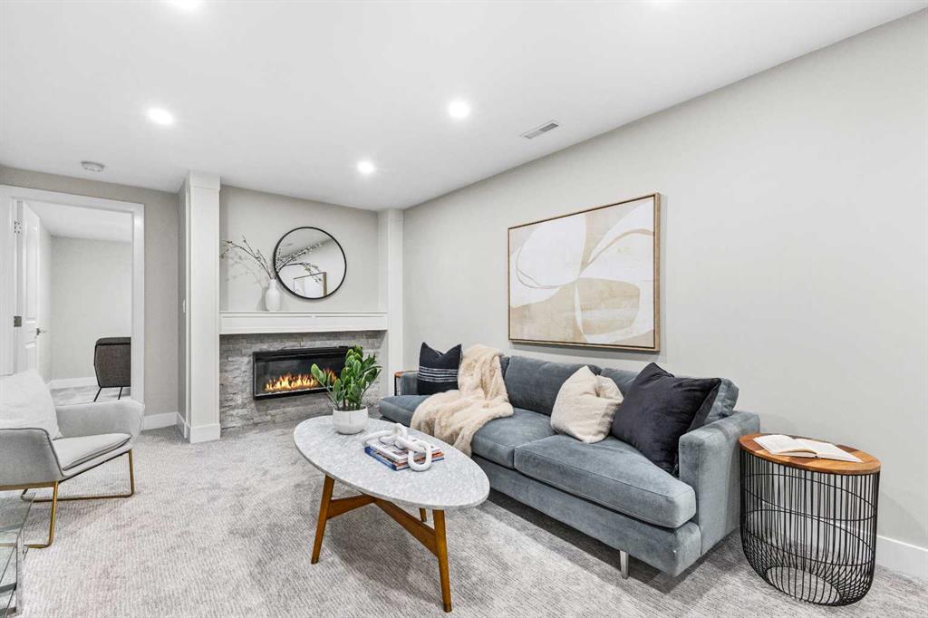 Downstairs, the fully developed basement is made for relaxing and entertaining — enjoy a spacious media/rec room with another fireplace and a sleek wet bar, two additional bedrooms, and a 3-piece bath.