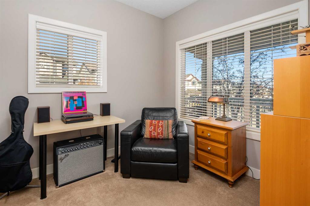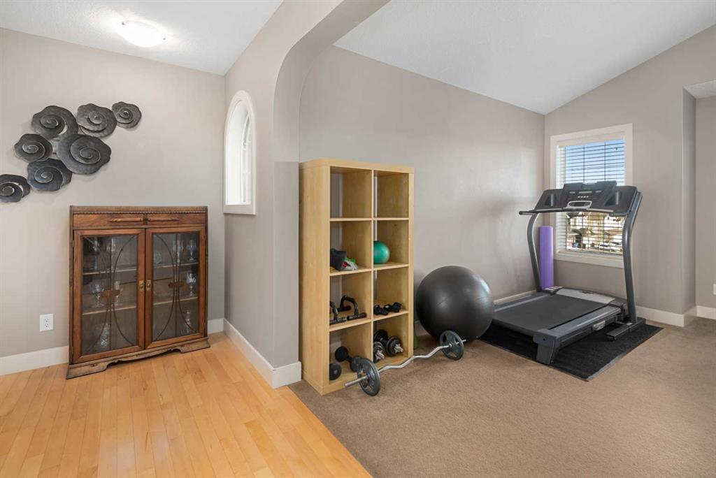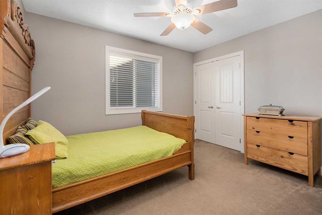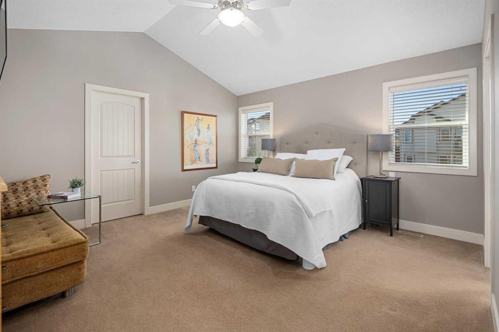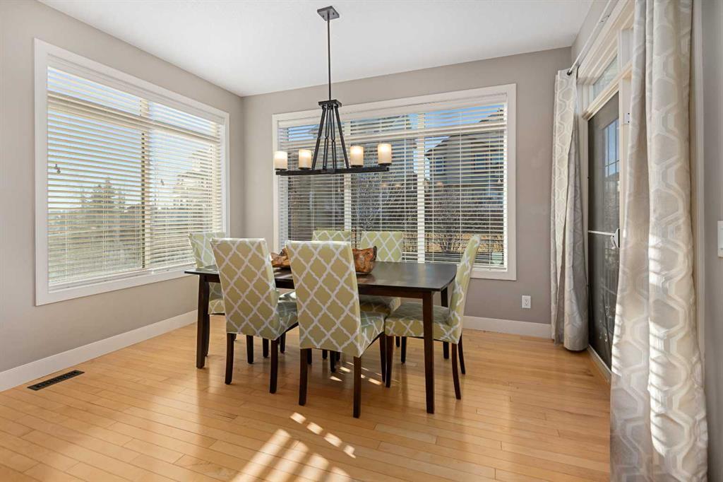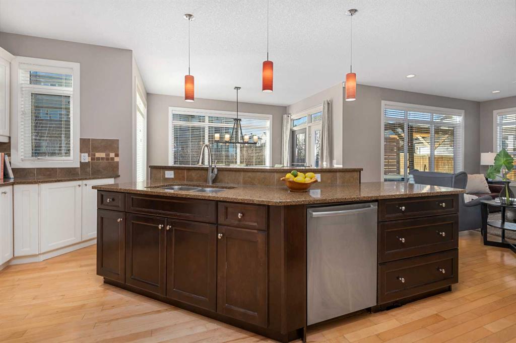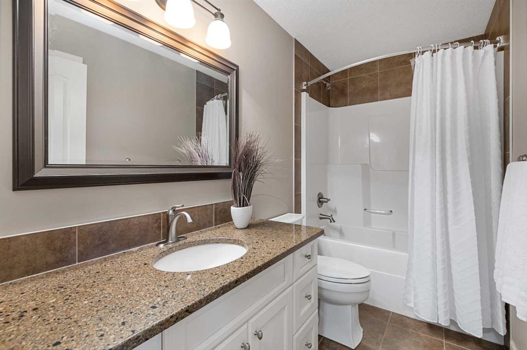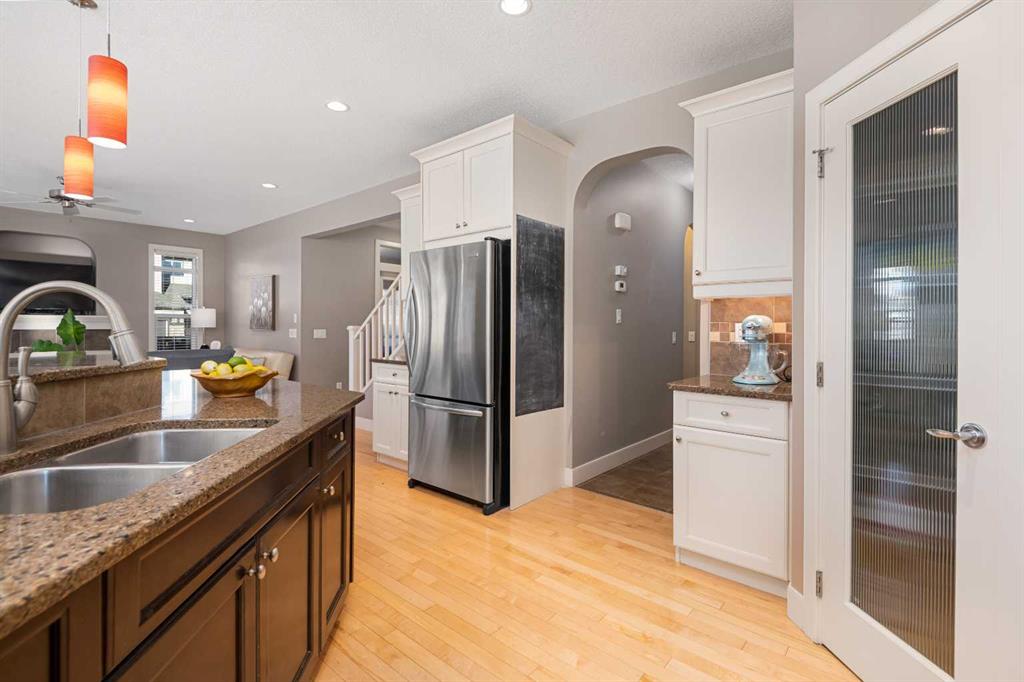 An expansive living room with large windows and gas fireplace creates a cozy space on a chilly evening. You will appreciate the white kitchen, equipped with upgraded cabinets, quartz countertops, stainless steel appliances and under-counter task lighting. There is plenty of counter space and cupboards as well as a pantry. The breakfast bar is a great place to relax over morning coffee. The adjoining dining area features more oversized windows with mountain views. The dining room overlooks the private backyard, where trees and shrubs offer added privacy. The West backyard is great for entertaining, complete with a pergola and concrete aggregate patio. Unwind after a long day in the hot tub. The functional, thoughtfully designed main floor also features a convenient laundry room and a powder room. The second floor bonus room is bathed in natural light and features vaulted ceilings. The primary bedroom is a true sanctuary, with another vaulted ceiling, a spacious layout with large walk in closet and an 5-piece ensuite bathroom. Indulge in the double vanities with quartz counters, a double shower with a bench, and a relaxing corner soaker tub. Two additional kid-friendly bedrooms and a well-appointed 4-piece bathroom complete this level, along with extra storage options provided the linen closet and a dedicated storage closet in the main bath. The unfinished basement presents a blank canvas, offering lots of storage space and the perfect opportunity to create the additional living area of your dreams! You’ll love the impressive upgrades throughout, including crown mouldings, 9-foot ceilings, and hardwood floors. There is a new, high efficiency furnace to keep you comfortable this winter and 5 large windows in the basement. This lovely family home has an ideal location, backing onto a walking path, and is just minutes away from schools, playgrounds, green spaces, and convenient shopping options. Experience the perfect blend of comfort, style, and functionality. Quick possession is possible.
