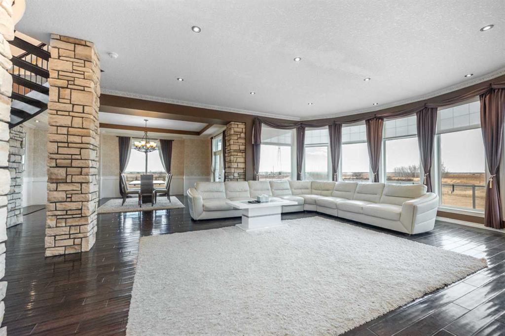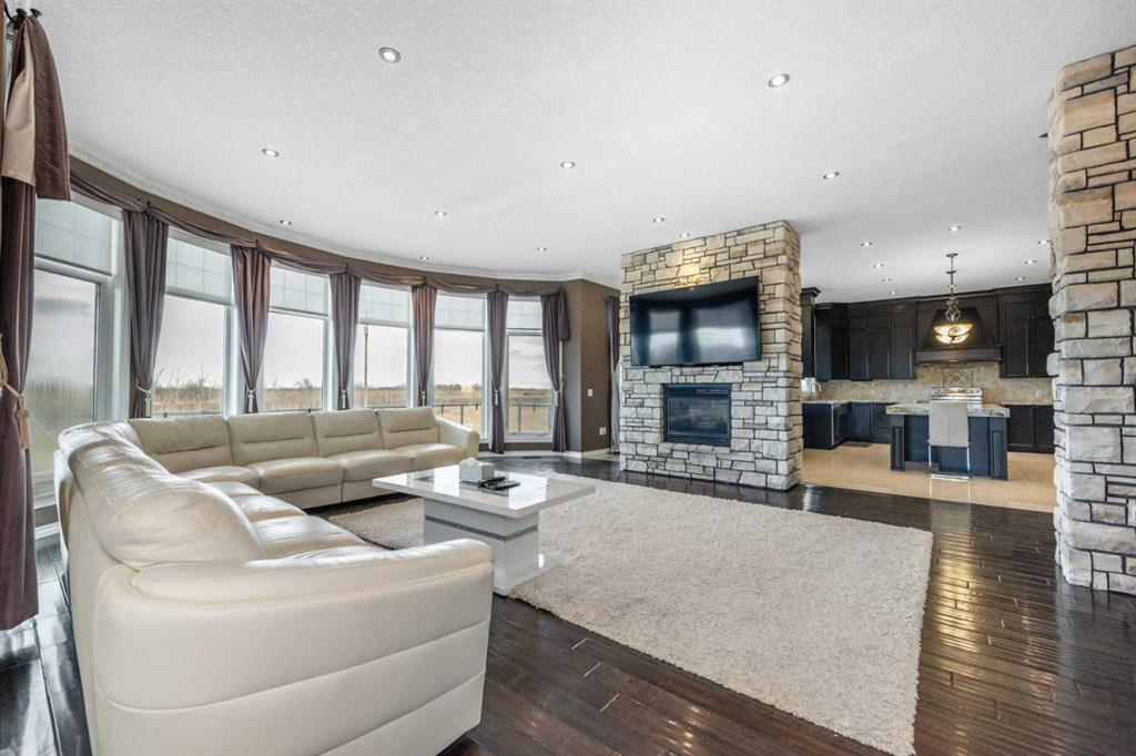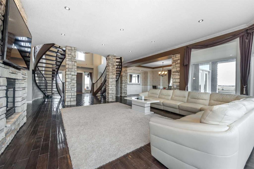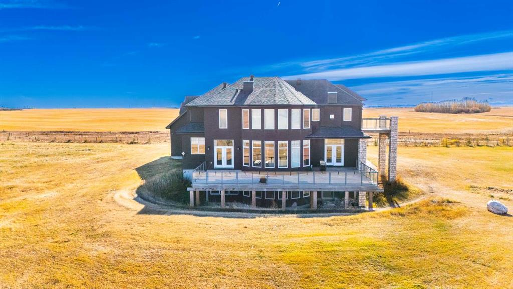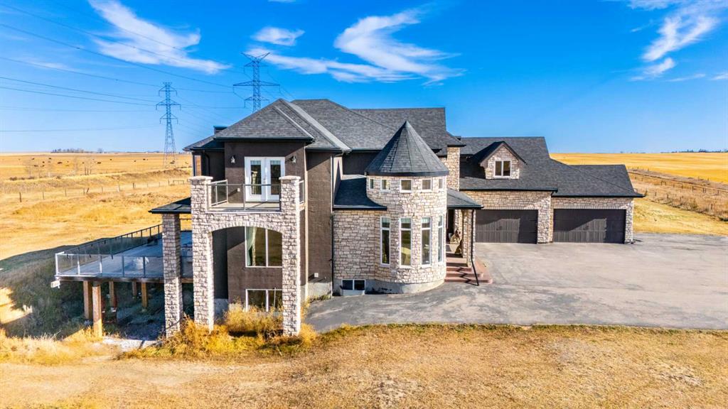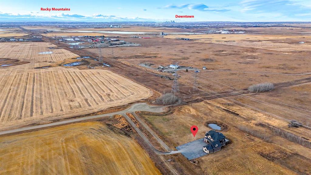 Welcome to this exceptional 4-acre estate offering breathtaking city and mountain views, a private gated driveway, and an unmatched blend of luxury and serenity—just 10 minutes east of Calgary. With over 4500 sq ft of beautifully designed living space across two levels, this custom home features a 4-car garage, walkout basement, and expansive indoor and outdoor areas ideal for both grand entertaining and everyday comfort.