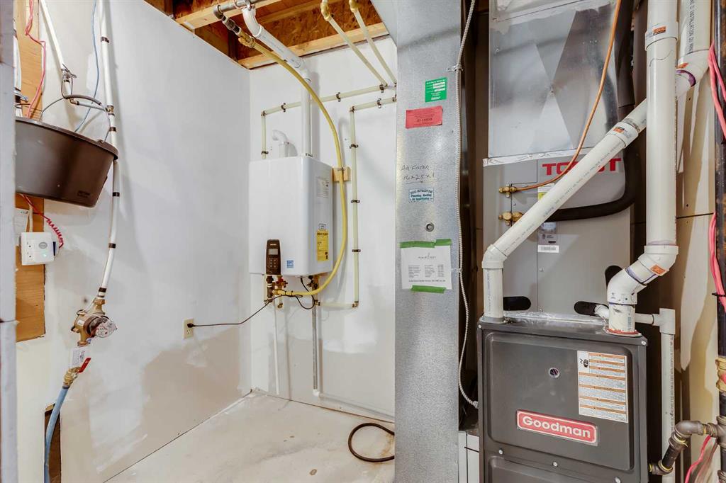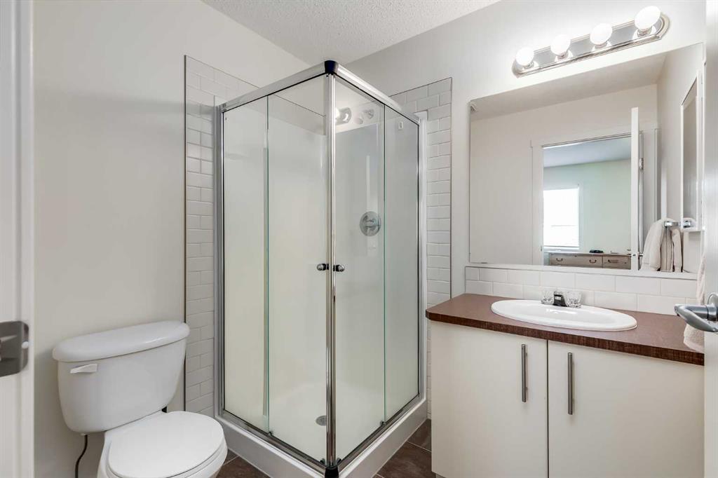 This thoughtful townhome blends comfort, convenience and year-round efficiency with a bright layout, dual primary bedrooms and a sunny south backyard that creates appealing outdoor space. Generous front windows fill the living room with natural light, setting a relaxed tone from the moment you step inside. Clear sightlines into the dining area support easy everyday living while the rear patio slider enables smooth transitions to the deck for barbeque nights or quiet mornings outside. A well-organized kitchen adds functional value with timeless subway tile, updated hardware, ample cabinetry and a pantry that keeps busy households running smoothly. A main floor powder room enhances day-to-day practicality. Upstairs, each bedroom enjoys its own private ensuite, offering comfort, privacy and flexibility for shared living, guests or future resale appeal. Carpeted floors add warmth across the upper level and windows in both rooms bring in consistent natural light. A partially finished basement presents abundant storage and future potential for additional living space as needs evolve. Air conditioning provides steady comfort in warm months, while the new tankless hot water heater ensures efficient, on-demand hot water. A fully fenced south-facing backyard extends living outdoors with room for gardening, relaxing or creating a pet-friendly space, supported by direct sunshine throughout the day. 2 dedicated parking stalls sit just steps from the front door for everyday convenience. Location adds further value, placing you minutes from Kingsview Market and Kings Heights amenities for groceries, dining and daily errands, along with quick access to CrossIron Mills for larger shopping trips. Proximity to local schools supports young families and smooth connections to Deerfoot offer efficient commuting into Calgary or around Airdrie. Investors, first-time buyers and downsizers will appreciate the low-maintenance lifestyle, smart layout and thoughtful improvements that make this home an easy choice in a well-loved community.