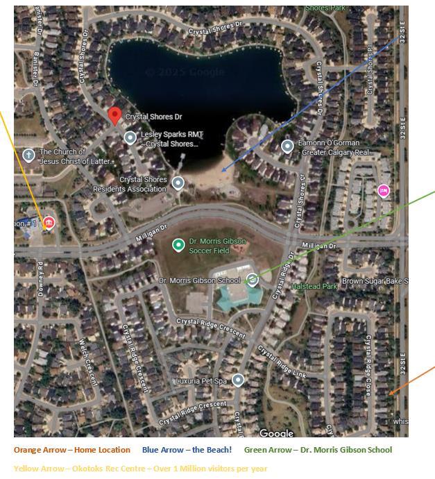 *** ASK ABOUT OUR MOVING ALLOWANCE OPEN HOUSE - SUNDAY, NOVEMBER 30th - 2 to 4 pm *** Welcome to this stunning, immaculately maintained home in the FAMILY friendly lake community of Crystal Shores. The BEACH, Rec Centre and DR. Morris Gibson school are only a few blocks away. With your purchase of this property your family will receive full beach access with year-round amenities like paddle boats, swimming and ice skating! WHAT AN AMAZING PLACE FOR YOUR FAMILY! Enter through the double attached garage or decorative frosted glass door into a large foyer with ceramic tile floor and an oversized window. The open concept main level is host to a spacious great room with LUXURY vinyl plank floors, tile-surround fireplace, 2 piece powder room, and is complimented with arched doorways and decorative niches. The well-designed kitchen offers beautiful appliances, large island, eating bar and a sunny nook leading out to a large freshly stained deck that overlooks the immaculately landscaped yard. Upstairs you will discover a large bonus room, 3 bedrooms, including a spacious master bedroom with ceiling fan, large walk-in closet, and spa-like 4-piece ensuite with elegant lighting, tile-surround jacuzzi tub and corner glass walled shower. There is also a full 4-piece bathroom upstairs. The basement is functional and has been developed to accommodate a growing family with a large bedroom and a 4 piece bathroom. The Furnace is only one year old. The double garage is large with room for 2 vehicles to park in it and there is also room for 2 vehicles to park outside for a total of 4 excellent parking stalls! This home has almost 2,800 sq. ft. of living area! It is also located close to the Sheep River with a myriad number of walking trails and downtown Okotoks with all its quaint shopping and art galleries! All this and excellent MOUNTAIN VIEWS! The shingles and siding were replaced in 2017. The Central Vac is roughed in. Air vents have been cleaned. The yard has two fruit trees. Quiet, private back yard! Call today to book a private showing.