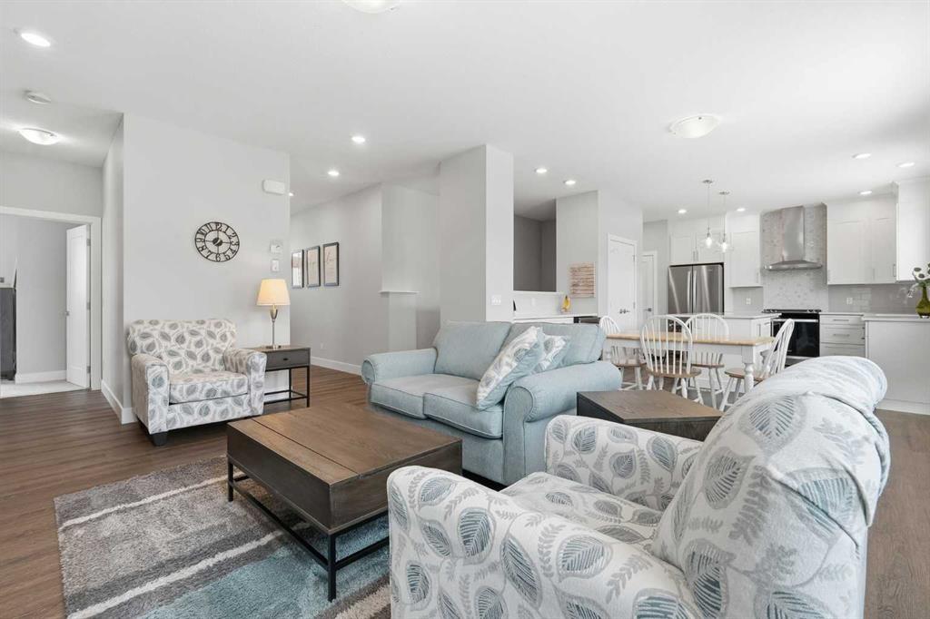 Experience the ease of lock-and-leave villa living in this nearly brand-new home, completed in 2024 and still carrying that fresh, new-home feel (and smell!) Elegantly and functionally designed, this low-maintenance villa offers tons of developed living space and is surrounded by everyday conveniences, including a nearby nature reserve, Spruce Meadows, shopping, and excellent access to major transportation routes. Inside, the home is loaded with upgrades. Through the front door you’re greeted with luxurious vinyl plank flooring underfoot, high ceilings above, and a neutral color palette throughout - each space absolutely drenched in natural sunlight. A quaint den to your right offers flexible use, while a handy half bath is thoughtfully tucked away from the main living and dining areas. You’re then welcomed into the bright living room, featuring a gorgeous upgraded gas fireplace and access to your rear deck, complete with a gas hookup for your BBQ. The kitchen & dining area truly anchor the home with their “wow” factor: extended height cabinets, a stunning hood fan, gas range, fridge with water, and a built-in microwave all form part of the upgraded appliance package. Quartz countertops make prep and cleanup effortless, while under-cabinet lighting adds warmth and ambiance at the end of the day. All cabinetry is finished with soft-close hinges and practical organizers throughout. The dedicated coffee/butler server station with a beverage cooler keeps your main counter space free and functional, and offers even more prep & storage space. The main level is designed with true convenience in mind, including side-by-side laundry. The generous primary bedroom features a large walk-in closet that leads into your spa-like 5-piece ensuite complete with dual sinks, a stunning tub, stand-alone shower, separate toilet room, and luxurious in-floor heating. Downstairs, high ceilings create a bright, open feel that’s far from a typical basement. A huge living area offers flexibility for a gym, media space, games room - whatever suits your lifestyle. Two additional bedrooms, a 4-piece bathroom, and ample storage complete the lower level. The utility room includes a high-efficiency furnace, sump pump, rough-in for radon mitigation, air exchange system, and a large hot water tank. This villa is finished with central A/C, a double attached garage, and a generously sized driveway (shoveled by the condo corp!) Beautifully appointed and designed for effortless living, this home is the perfect blend of comfort, luxury, and low-maintenance convenience - an ideal option for anyone seeking easy living. This is truly a smart move.