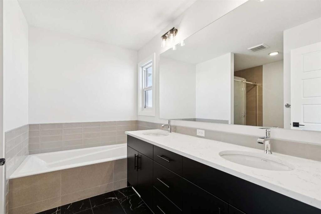 Experience modern comfort in this beautifully finished home featuring LVP flooring, triple-pane windows, and a stylish kitchen with stainless steel appliances, chimney hoodfan, microwave tower, gas range, kitchen island, walk-in pantry, Quartz countertops, undermount sinks, and a Silgranit sink. Enjoy a 10' x 12' deck with BBQ gas line rough-in, an electric fireplace, a vaulted bonus room, and upper-floor laundry. The primary bedroom offers a luxurious 5-piece ensuite with a soaker tub, tiled shower with fibreglass base, tile flooring, Quartz countertops, undermount sinks, and a bank of drawers. The fully developed basement of this home features a ONE BEDROOM LEGAL SUITE including full bathroom, 9' ceilings and convenient side entrance. Built by a trusted builder with over 70 years of experience, this home showcases on-trend, designer-curated interior selections tailored for a home that feels personalized to you. This energy-efficient home is Built Green certified and includes triple-pane windows, a high-efficiency furnace, and a solar chase for a solar-ready setup, plus an electric car charger rough-in, it’s designed for sustainable, future-forward living. Featuring smart home technology, this home includes a programmable thermostat, ring camera doorbell, smart front door lock, smart and motion-activated switches—all seamlessly controlled via an Amazon Alexa touchscreen hub. Some photos are representative.