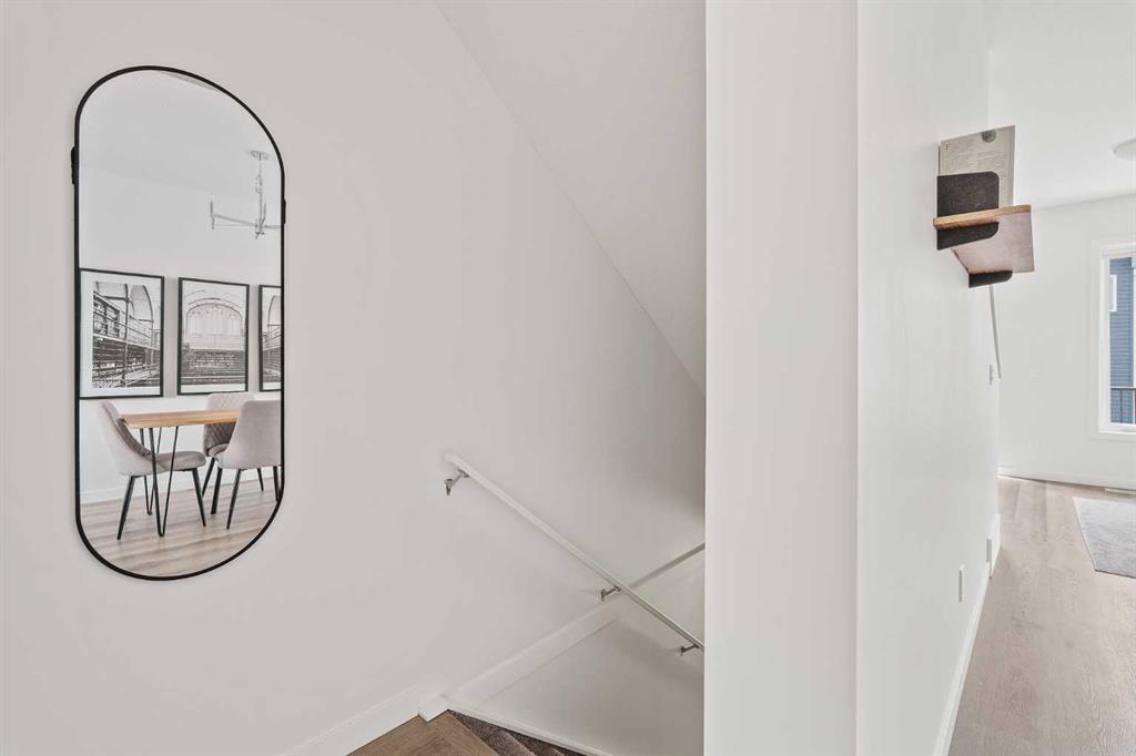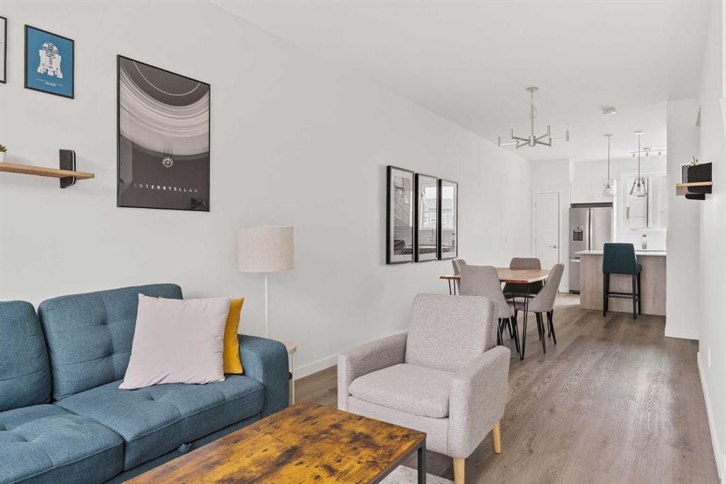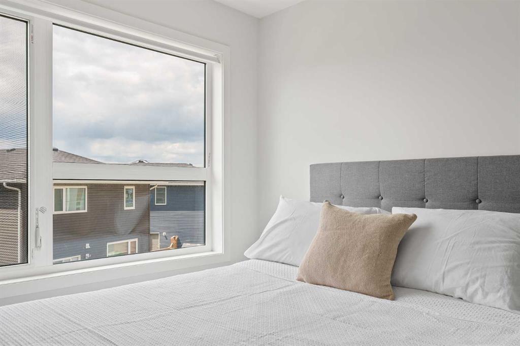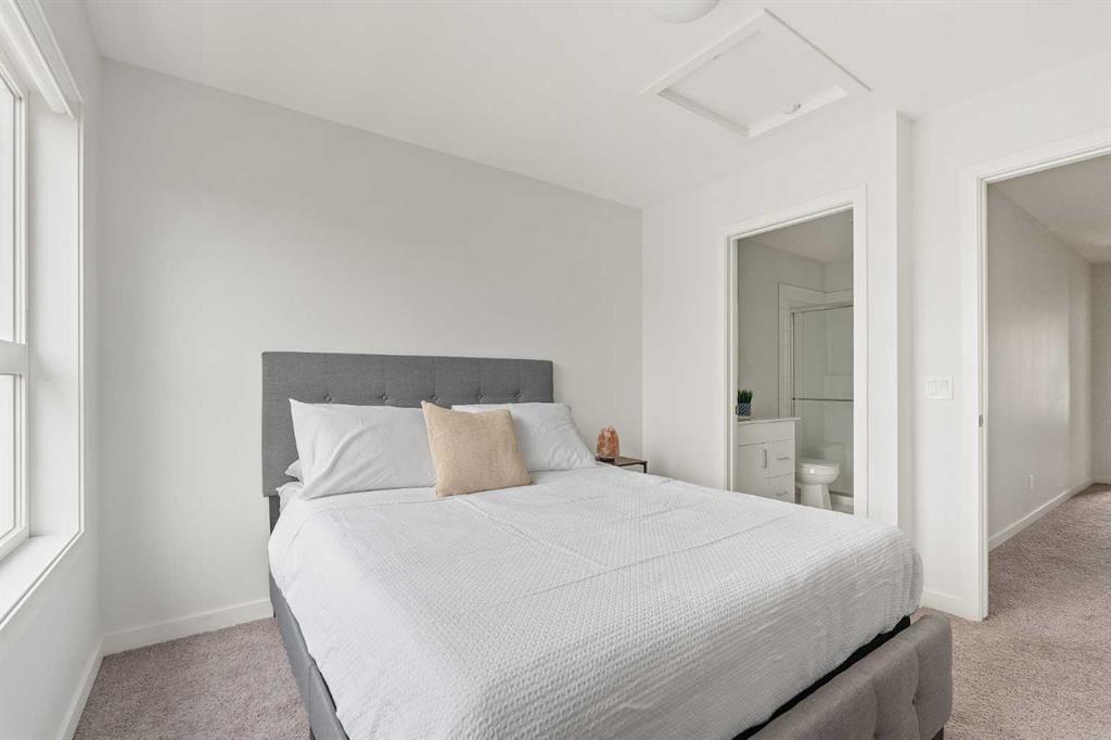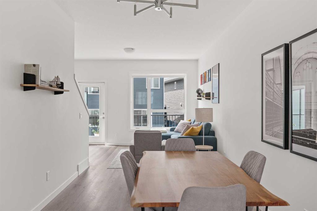 Maintenance-free living awaits in this sophisticated and modern townhome that has been lovingly cared for and is in like-new condition. Open and airy with oodles of natural light, stylish décor and a convenient dual master floor plan, this beautiful home is sure to impress. Park your vehicle safely out of the elements in the attached garage (with extra parking on the private driveway) and proceed into the entry level with a large flex space providing a ton of versatility for media, games, work or play. The second level is a stylish retreat with a bright and open floor plan leading to unobstructed conversations. Sit back and relax in the living room with an oversized window and a patio door to the expansive balcony with a gas line encouraging casual barbeques and time spent unwinding. Centring the open concept space is the dining room, perfect for entertaining. Culinary explorations are inspired in the beautiful kitchen featuring a plethora of 2-toned cabinets, stainless steel appliances, timeless subway tile and a breakfast bar that makes mornings a breeze. A handy powder room completes this level. Dual primary bedrooms grace the upper level, both are extremely spacious and bright with dual closets and private ensuites, perfect for roommates! Convenient upper level laundry adds another layer of ease to your routine. Set in an emerging, amenity-rich community with newly established schools, commercial developments, playgrounds, and green spaces, this location balances tranquillity with accessibility. Just minutes to Metis Trail, Stoney Trail, Country Hills, Costco, Cross Iron Mills, and the airport—this is truly a connected, convenient place to call home.