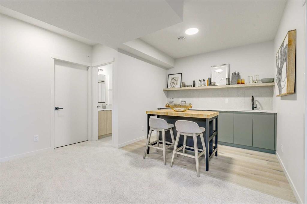Welcome to this stunning former Morrison Homes that has 2800+ sq.ft. of developed space in the community of Livingston. Situated on a coveted corner lot, this detached property features central air conditioning, exterior Gemstone lighting, an attached front double garage, spindle railing throughout, and showcases premium upgrades from top to bottom. The main floor offers an open-concept layout highlighted by pot lights, elegant LVP flooring, and an electric fireplace that adds warmth and style to the living room. The gourmet kitchen includes a gas range, a beautifully designed kitchen island, a walk-in pantry connected directly to the mud room for effortless grocery unloading, a dining area, and a dedicated den perfect for a home office. A convenient 2-piece bathroom completes the main level. Upstairs features a spacious bonus room filled with natural light, a dedicated laundry area with a washer and dryer and three well-appointed bedrooms. The primary suite includes a luxurious 5-piece ensuite with a large tiled walk-in shower with rainfall showerhead, deep soaker tub surrounded by premium tile, dual vanities with quartz countertops, contemporary flat-panel cabinetry, sleek modern mirrors, and direct access to a spacious walk-in closet with built-in shelving. The additional two bedrooms share another 5-piece bathroom designed for comfort and convenience. The fully developed basement extends your living space with a large recreation area, a wet bar with mini-fridge, an additional bedroom, a 3-piece bathroom, and a separate entrance, offering excellent potential for multi-generational living or added privacy. Built on 9' foundations, the basement feels bright, open, and inviting. Outside, enjoy a massive backyard with a deck equipped with a gas line for BBQs. Livingston residents enjoy access to an HOA clubhouse featuring a gymnasium, tennis courts, a splash park, and year-round programming, along with quick access to major routes for easy commuting across the city. This exceptional home blends luxury, comfort, and functionality—perfect for families seeking space, upgrades, amenities, and craftsmanship.
