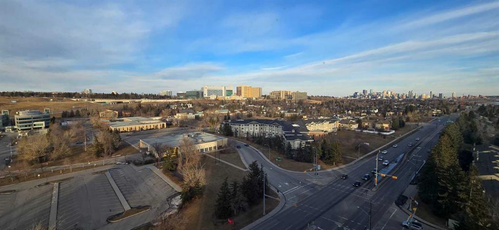 HOME SWEET HOME! Indulge in maintenance free ADULT CONDO LIVING in this updated 15th floor unit situated in the sought-after NW community of Point McKay offering BRAND NEW LUXURY VINYL PLANK FLOORING THROUGHOUT. This desirable, quiet building offers an exquisite unit with 2 bedrooms, 1.5 bathrooms and 1,013 SQFT of beautifully maintained living space with BREATHTAKING PANORAMIC VIEWS of Downtown Calgary, the Skyline and valley views. Heading inside you will fall in love with the spacious, open concept floor plan with wall to wall windows to bask in your pristine views throughout the condo. Features include a massive living room that is flooded in natural sunlight, formal dining area perfect for hosting guests, a spacious foyer and the chef’s kitchen fully equipped with white appliances, ample cabinet and counter space and a pantry. Also featured in the unit is a generous sized bedroom, full 3 piece bathroom and the massive, master retreat with a walk-in closet and large 2 piece ensuite bathroom. Updates include new cork flooring and upgrades in the kitchen. Completing the unit is a balcony to have a coffee while enjoying your dream views, in-suite laundry, an underground parking stall and assigned storage locker perfect for all your needs. The popular Riverside Towers includes exclusive amenities such as a media room, library, 24/7 concierge, onsite security, car wash, visitor parking, preferred pricing option with the Riverside Club and Spa. This location is perfect for home buyers, investors and downsizers looking to be steps from the tranquil Bow River and its numerous pathways and close to Foothills Hospital, Children’s Hospital, University of Calgary, University District and quick escape to Highway 1 and the mountains. Don’t miss out on this opportunity, book your private viewing today!