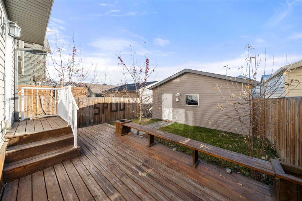 Step outside to your sunny south-facing backyard—complete with a spacious deck, green grass, and room to play or entertain. The double detached garage provides plenty of room for parking and storage.