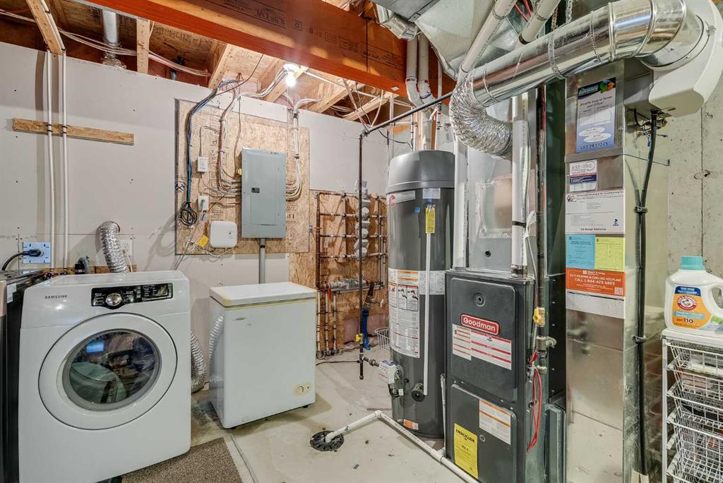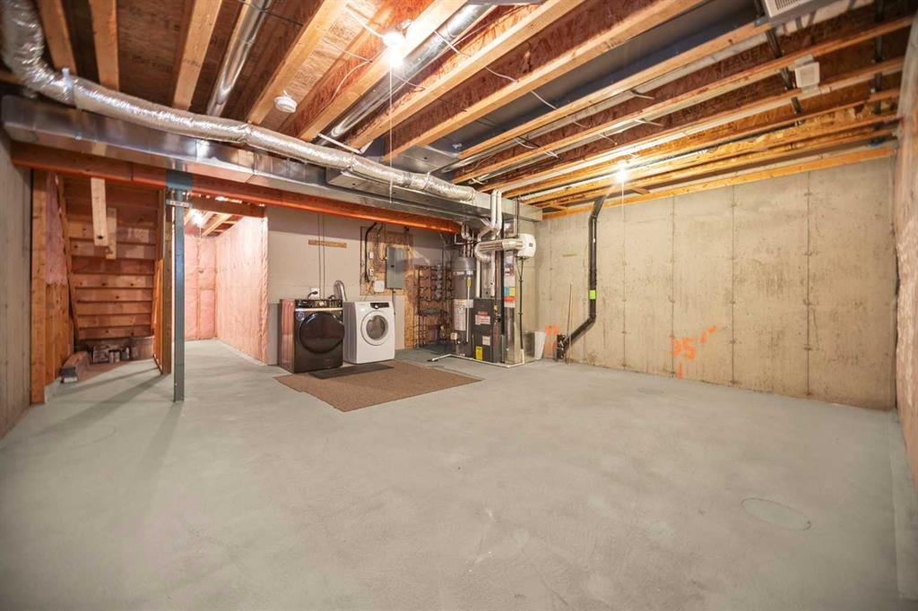 Upstairs, the spacious primary bedroom offers a 4-pc ensuite with granite, tiled floors, and subway-tile surrounds—finishes echoed in the additional bathroom. Two additional bedrooms complete this upper level. Cohesive laminate flooring on the main and upper level. The basement is unfinished offering many future development opportunities, featuring new washing machine (Apr 2025) and dryer in the basement make it truly move-in ready.