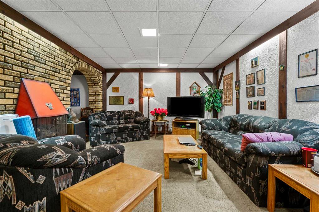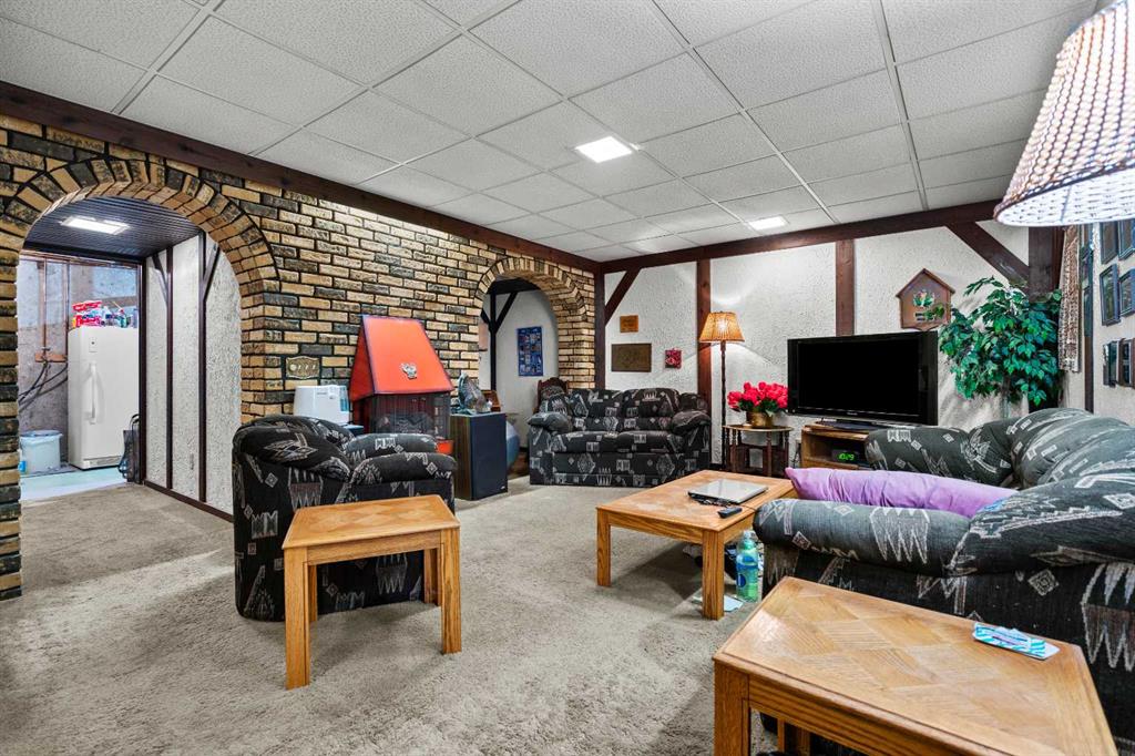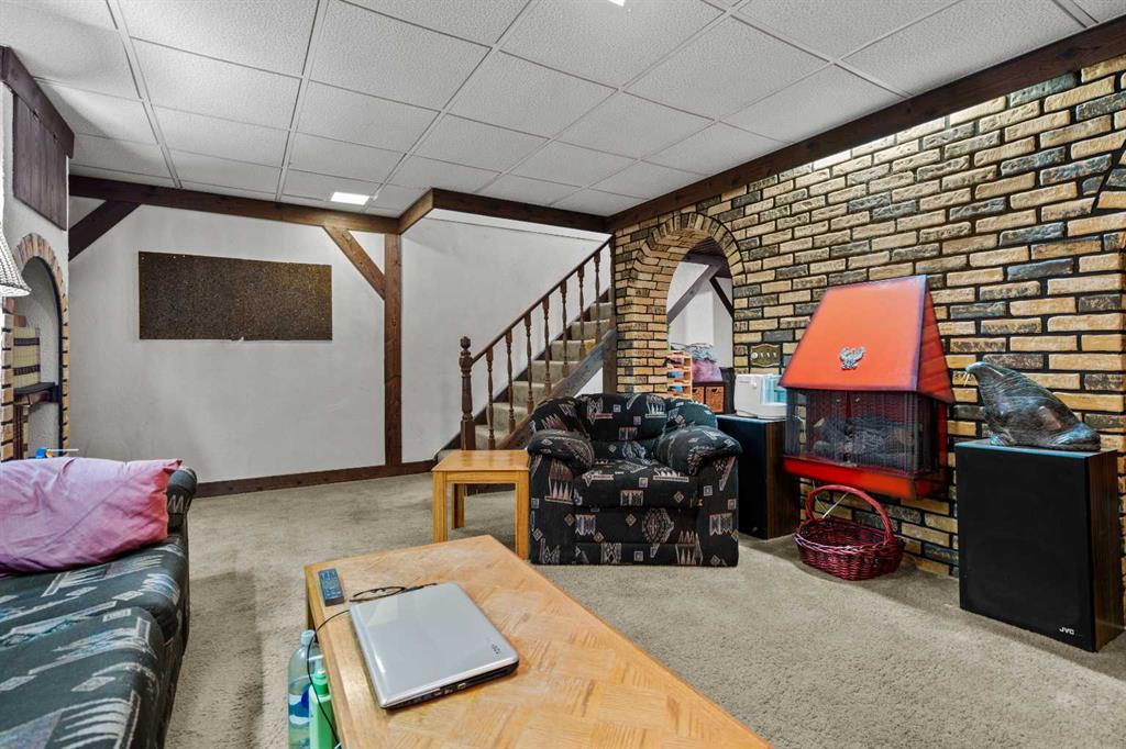 The main level is completed by a convenient half bath, while upstairs offers three generous bedrooms and a full 4-piece bathroom, perfect for families, first-time buyers, or anyone seeking extra space. The finished basement with wood burning fireplace provides a large recreation area, laundry space, and additional storage options.