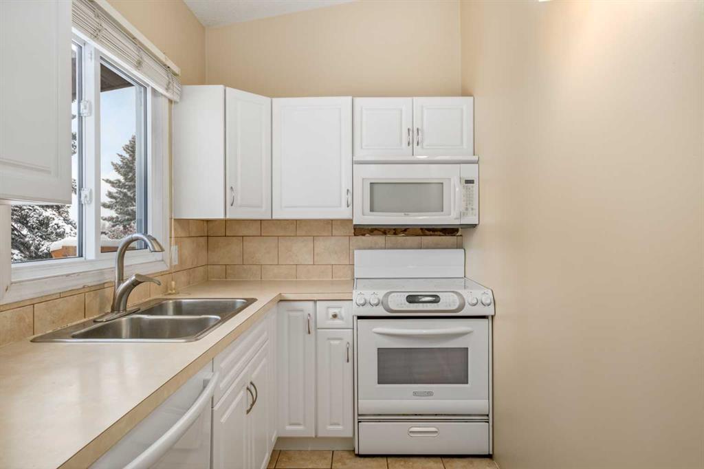 Welcome to this move-in ready bi-level townhome tucked quietly on the inside of the complex in sought-after Rundle—an affordable condo price point with all the everyday perks of townhome living. With low condo fees, this 2-bedroom, 1.5-bath attached unit offers outstanding value, including two assigned parking stalls right out front and a private deck backing onto peaceful greenspace (not a busy road). The upper level is bright and open with vaulted ceilings, exposed beams, large windows, and a cozy wood-burning fireplace that anchors the living room. The galley-style kitchen features timeless white cabinetry, tile backsplash, laminate countertops, and crisp white appliances (fridge, stove, dishwasher & Microwave/Hoodfan Combo), flowing into the adjacent dining area with a door to your covered deck—perfect for morning coffee overlooking the green space between units. A 4-piece bathroom and convenient storage complete the main floor. Downstairs you’ll find two comfortable bedrooms with oversized windows, excellent in-unit storage, and a rare second bathroom for this complex—a 2-piece bath located just outside the mechanical room. It’s a practical bonus for everyday life, giving you a bathroom on the lower level so you don’t have to head upstairs every time. Major updates are already in place: windows ~10 years, roof ~1 year, hot water tank ~18 months, and a brand new furnace—plus recent complex improvements to roof, stucco, and windows. All of this in a prime location steps to Cecil Swanson School (K-6), Dr. Gordon Higgins School (7-9), Rundle Community Centre, parks, playgrounds, sports courts, shopping, and transit. If you’re looking for an entry-level price with greenspace views, two parking stalls, low fees, and a quiet interior setting, this is a fantastic opportunity in an established community.