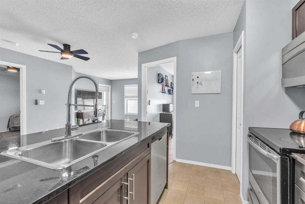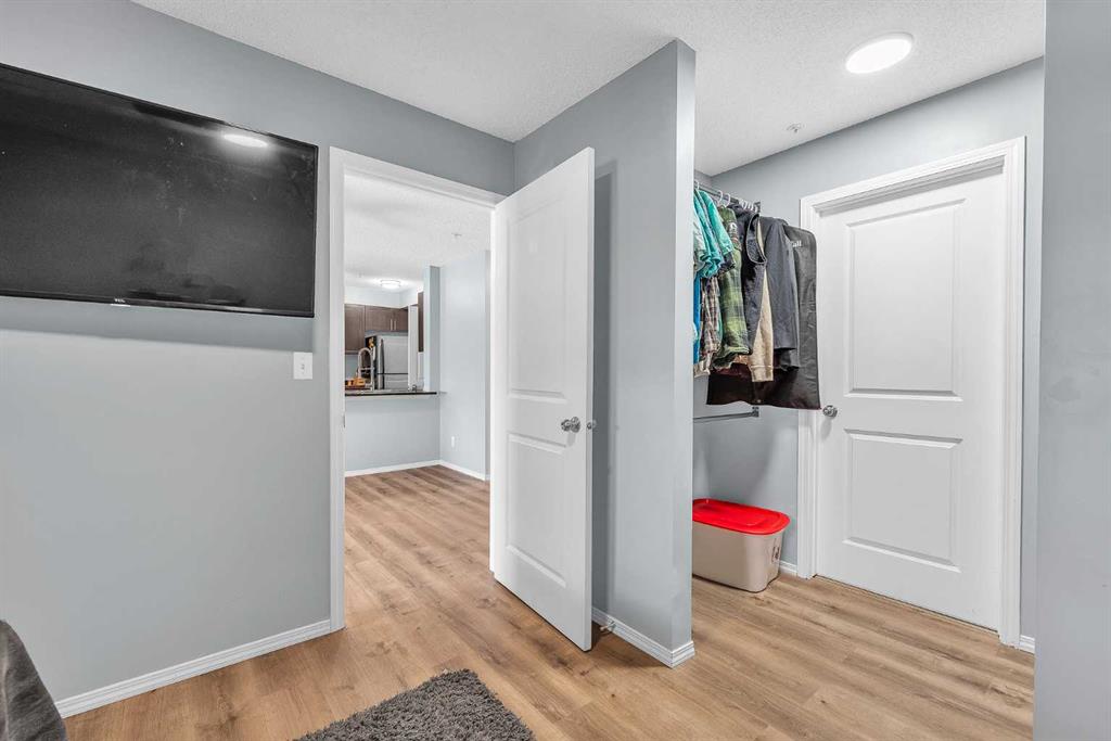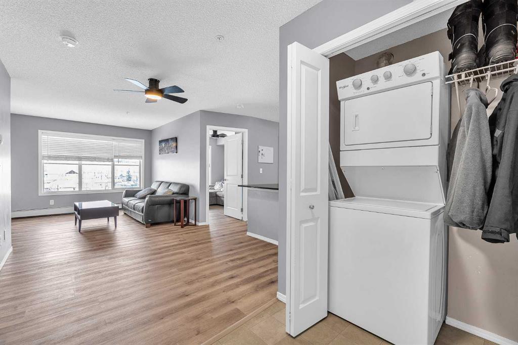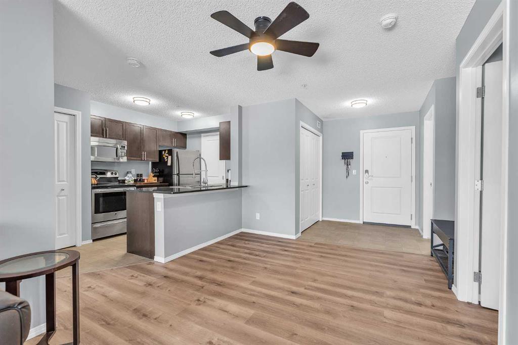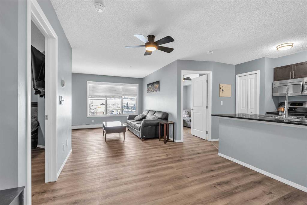 Are you looking for walkability and convenience in Cochrane? Welcome to #1414, 625 Glenbow Drive. This top-floor 2-bed, 1-bath condo is in LIKE -NEW CONDITION and features a smart, OPEN-CONCEPT layout with QUARTZ COUNTERTOPS and a series of recent upgrades. The entire unit has been FRESHLY REPAINTED, including the ceilings, and the bathroom has been updated with new cabinetry and a modern sink. Additional improvements include UPDATED LIGHTING, new LUXURY VINYL FLOORING throughout (no carpet), and a NEW BLIND package. The kitchen offers a functional breakfast bar for busy mornings, along with ample cabinetry, stainless steel appliances, a dedicated pantry, and QUARTZ COUNTERS. Parking is ideal with both a HEATED, TITLED UNDERGROUND STALL for winter months and second ASSIGNED SURFACE STALL located close to the main entrance. Move-in ready and thoughtfully updated, this unit combines modern finishes with true walkability—just steps from restaurants, shopping, and grocery options. Book your private showing today.