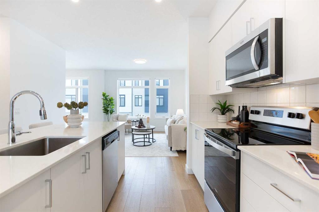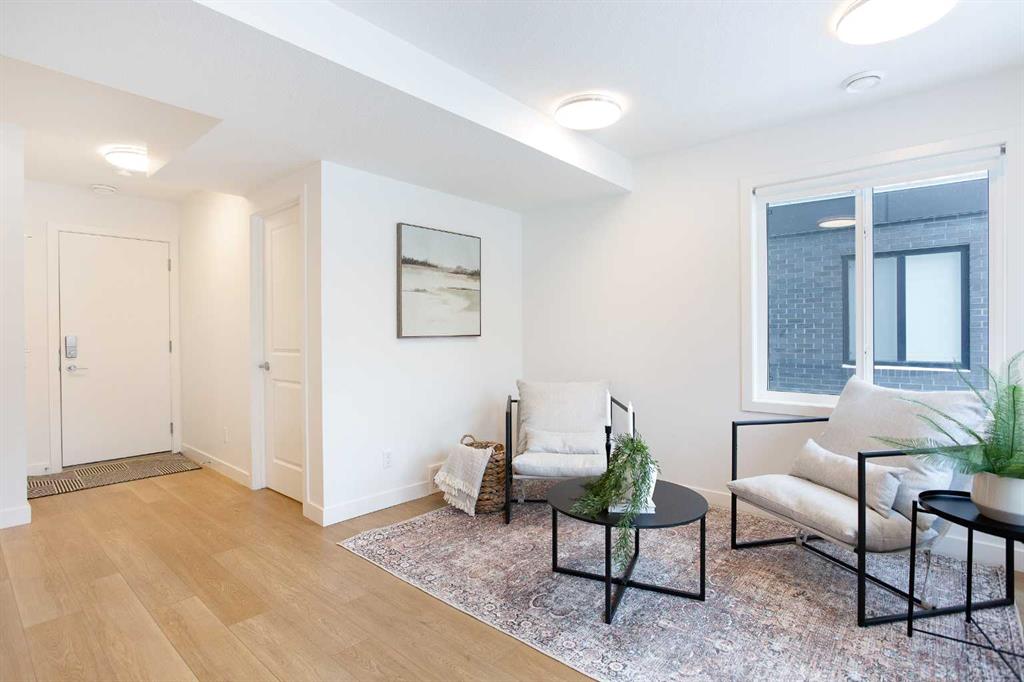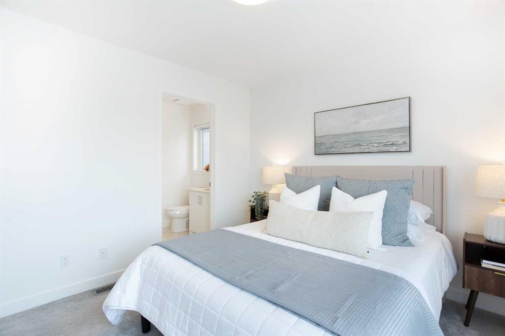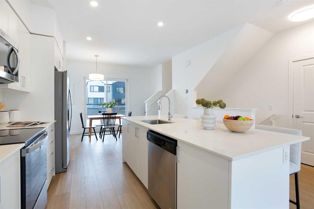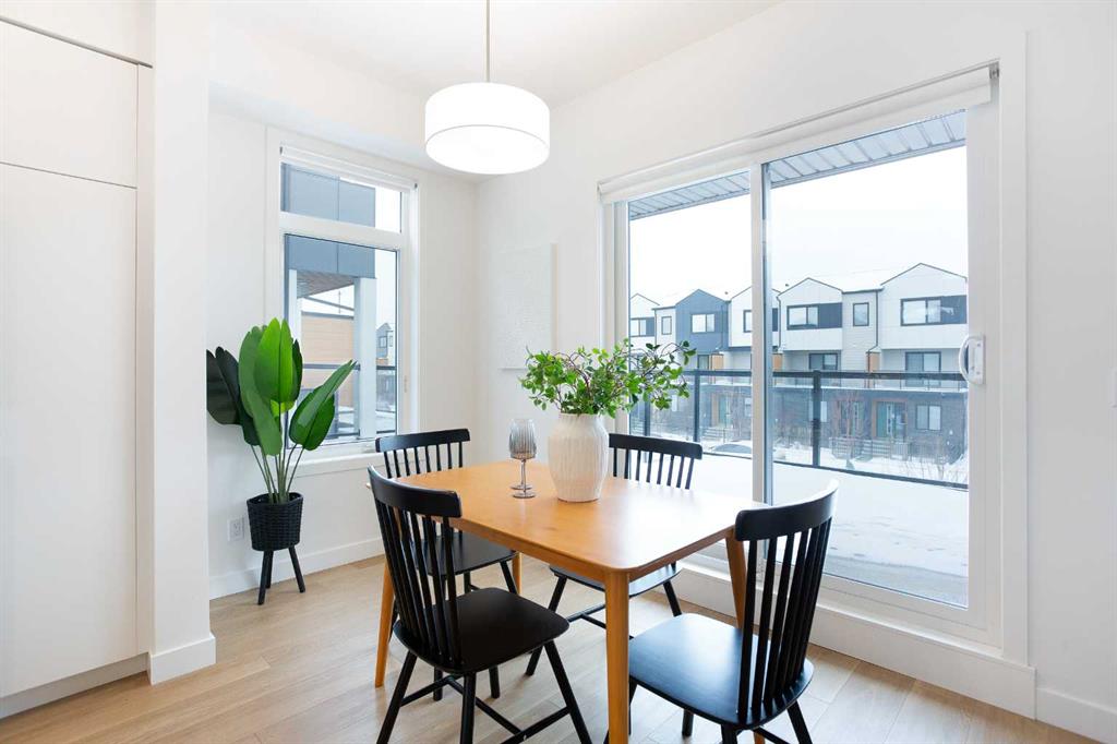 Step into a world where sophistication seamlessly meets everyday comfort in this remarkable contemporary townhome. Boasting over 1,634 sqft spread across three impeccably designed levels, this residence features three spacious bedrooms and two and a half bathrooms, offering an environment of refined, turn-key living. The moment you enter the welcoming foyer, you are greeted by a beautiful main floor living room, bathed in an abundance of natural light. This ground floor ensures ultimate functionality, featuring a generously sized coat closet, utility room, and a practical mudroom that provides direct, access to your convenient double attached garage. Upstairs, discover the heart of the home - a bright and open haven for both daily life and entertaining. The family room provides an idyllic setting and offers a bright and inviting ambience. The stunning, modern kitchen showcases sleek countertops, ample cabinetry, and is anchored by a large center island that provides comfortable seating for four. This culinary space flows effortlessly into the generously sized dining room. Extending your living space outdoors is a sunny balcony located just off the dining area—the perfect spot for enjoying your morning coffee or hosting summer evening gatherings. For the convenience of your guests, a stylish two-piece powder room completes this impressive main entertaining level. The private upper level is dedicated to peaceful relaxation. The flooring transitions to plush carpeting, creating a tranquil environment for the three spacious bedrooms. The primary suite is a true retreat, featuring a private three-piece ensuite and a dedicated walk-in closet. The two additional great-sized bedrooms, each with ample closet space, share a well-appointed four-piece main bathroom, plus an essential addition to this floor is the conveniently located upper-level laundry room. Beyond the elegant interior, this home offers superb comfort and convenience, including central air conditioning, parking for 4, plus a storage room within the garage. Designed for those who value style, comfort, and unparalleled convenience, this home checks all the boxes. Set in Belvedere—one of Calgary’s most exciting and fast-growing neighborhoods, you are placed moments from everything you need. Whether you’re a first-time buyer, growing family, or investor, this property is a must-see so book your showing today!