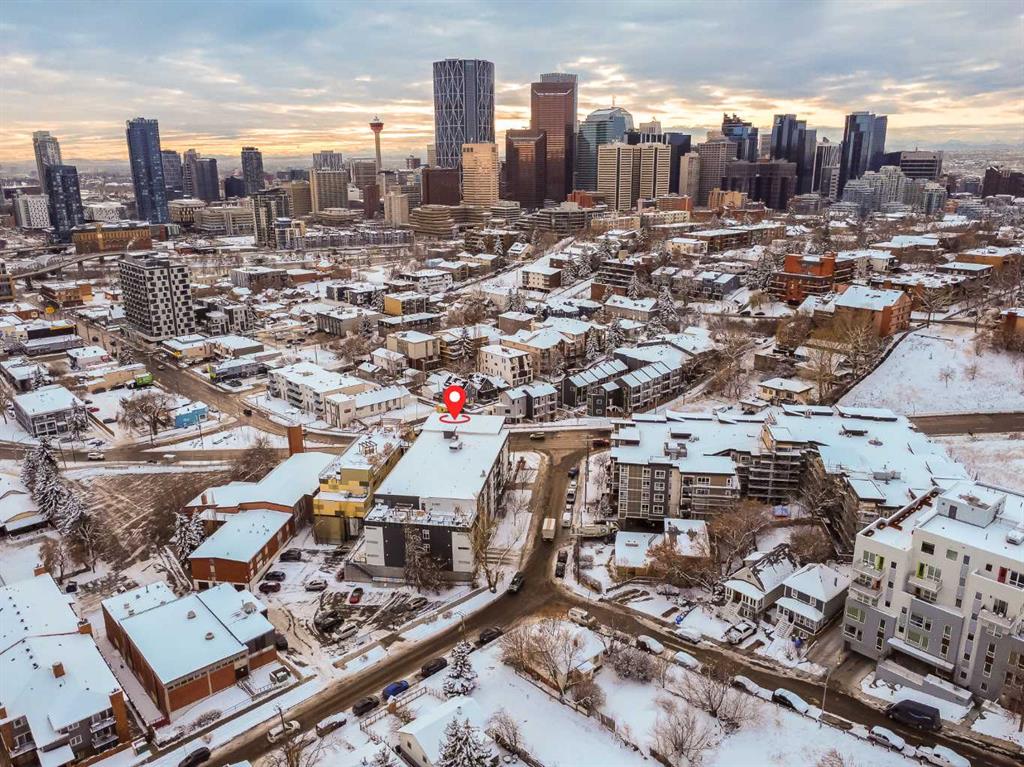 *OPEN HOUSE Saturday December 6th 12:00pm-2:00pm* Welcome to 515 4 Ave NE #415 in the heart of Bridgeland—a prime top-floor unit offering stunning downtown skyline views and unbeatable value for first-time home buyers or investors. This bright and thoughtfully designed 2 bedroom, 2 bathroom condo features an open layout with large windows flooding the space with natural light, a private balcony overlooking downtown, and modern finishes throughout. Enjoy laminate flooring, sleek quartz countertops, and tile flooring in both bathrooms.