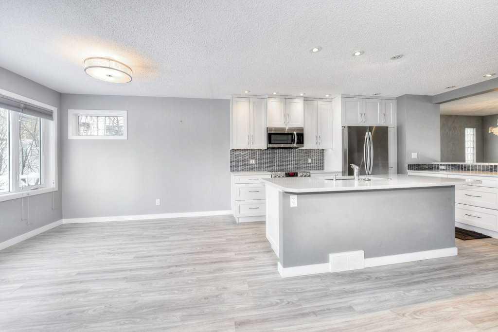 Located just minutes from Marda Loop, this updated single-family 2-storey infill features a double detached garage. Step into a spacious, tiled front entry and a main floor renovated in 2013, offering updated flooring throughout. At the front of the home is a warm, sunlit living room with a wood-burning fireplace. Moving through, you’ll find a large dining area adjacent to an updated kitchen with a generous central island with a deep sink, extensive cabinetry, a quality LG stainless-steel appliance package, and a Bosch dishwasher. At the rear of the home is a spacious nook and a door leading to an expansive deck with stairs down to the yard. A stylish, updated 2-piece bath completes the main floor.