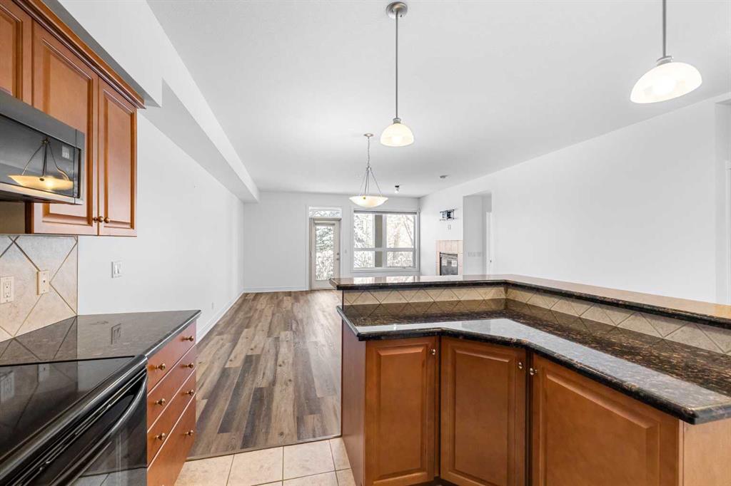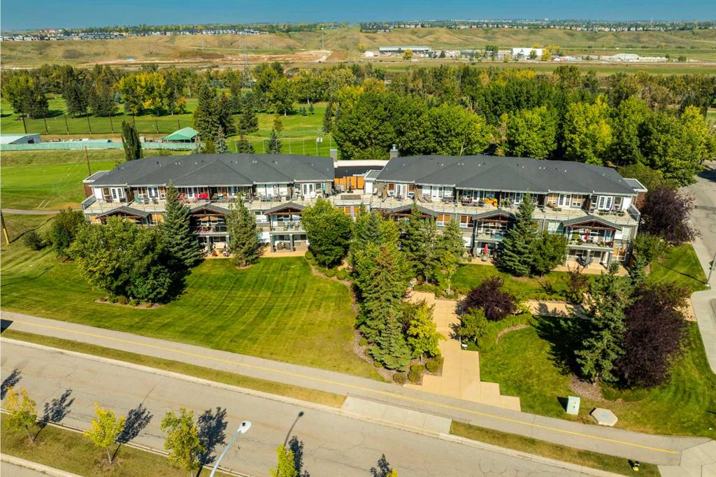 Nestled in a serene, natural setting, this beautifully appointed one-bedroom condo offers the perfect blend of modern convenience and outdoor tranquility. Located in a sought-after NW community, the property backs onto the Valley Ridge Golf Course, providing views right from your private living space. Heated by an in floor heat system you will always be at that perfect ambient temperature. Large windows frame picturesque vistas of the rolling hills and mature trees, this home offers a peaceful retreat where nature is always just a step away. Inside, you'll find an open-concept living and dining area, designed to maximize space and light. The living room features large windows that invite the outdoors in, creating a bright and airy atmosphere. The modern kitchen is equipped with stainless steel appliances, oversized island, sleek countertops, and plenty of storage, making it a perfect space for both entertaining and everyday cooking. This main floor unit walks directly out onto your own private patio that spans across the unit providing tons of personal outdoor living space. The spacious bedroom provides a comfortable haven, with ample closet space and more of those views of the golf course and surrounding greenery. The ensuite is stylishly designed, offering a clean, contemporary feel with all the amenities you'd expect for ultimate relaxation. There is a flex room that has been used as an office with builtins, and shares a space with in-suite laundry making laundry day a breeze without the need to leave the comfort of your home. This unit also comes with two underground heated parking stalls, ensuring you'll never have to worry about parking, no matter the weather, as well as a separate storage locker to keep your seasonal items, sporting equipment, and extra belongings neatly tucked away. The complex is surrounded by nature trails and pathways, perfect for outdoor enthusiasts who enjoy hiking, biking, or simply strolling through the scenic surroundings. The Valley Ridge Golf Course offers a stunning backdrop, with beautifully manicured fairways and a peaceful atmosphere, making this condo an ideal location for those who appreciate a connection to nature without sacrificing the conveniences of urban living. Whether you're relaxing in the comfort of your own home or exploring the outdoors, this condo offers the best of both worlds—privacy, convenience, and an unparalleled connection to the beauty of nature. It’s a perfect place for anyone seeking a peaceful and modern living space with easy access to outdoor recreation and stunning views.