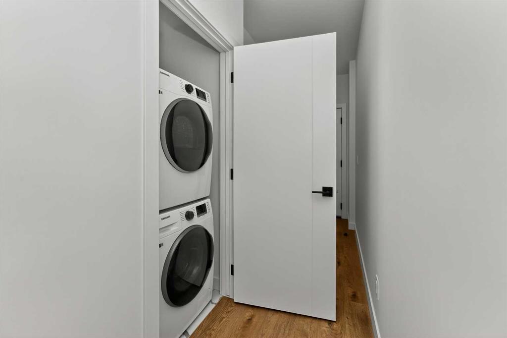 The bright primary bedroom features expansive windows and generous closet space, while the contemporary 4-piece bathroom includes a quartz vanity and in-suite laundry for added convenience.