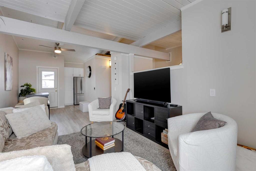 Nestled in the sought after, family friendly community of Oakridge, this beautifully renovated, open-concept home blends timeless charm with modern comfort. Offering 974 sq. ft. of thoughtfully designed living space and extensive upgrades throughout, this home is sure to impress. Bright and airy, the interior showcases oversized vinyl windows, 12-foot vaulted ceilings with exposed beams, and luxury vinyl plank flooring that extends gracefully throughout the home. The stylish kitchen is masterfully designed for efficiency and entertaining, featuring shaker-style white cabinetry, elegant subway tile backsplash, and modern stainless steel appliances. The kitchen flows seamlessly into a refined dining area and living room, centered around a cozy wood burning fireplace, ideal for entertaining and relaxation. A beautifully finished four-piece bathroom with a custom tile tub surround completes the main floor. The lower level continues to shine with oversized windows, fresh vinyl plank flooring, and newly installed carpet in both bedrooms. The spacious primary bedroom comfortably accommodates a king size bed, while the second bedroom is ideal for guests or a dedicated home office—an excellent setup for staying cool during warm summer nights. This level also includes an oversized 2-piece bathroom and a convenient laundry area equipped with newer front-load washer and dryer. Outside, enjoy a fully fenced and private backyard featuring a deck and concrete patio—perfect for extending your living and entertaining space. At the front, the home is greeted by an extended yard accented by mature lilac trees adding exceptional curb appeal. Your dedicated parking stall sits just steps from the home, with plenty of additional street parking for guests. Further recent updates include the furnace (2020), windows (within the last 10 years), and roof (2024), offering peace of mind for years to come. A perfect home in a fantastic location! Situated across the street from shopping, a grocery store, professional services and within minutes to schools, Stoney Trail, the Glenmore Reservoir, the Weaselhead Natural Area, and South Glenmore Park, this home offers exceptional convenience in one of Calgary’s most beloved communities. A truly exceptional home in an unbeatable location.