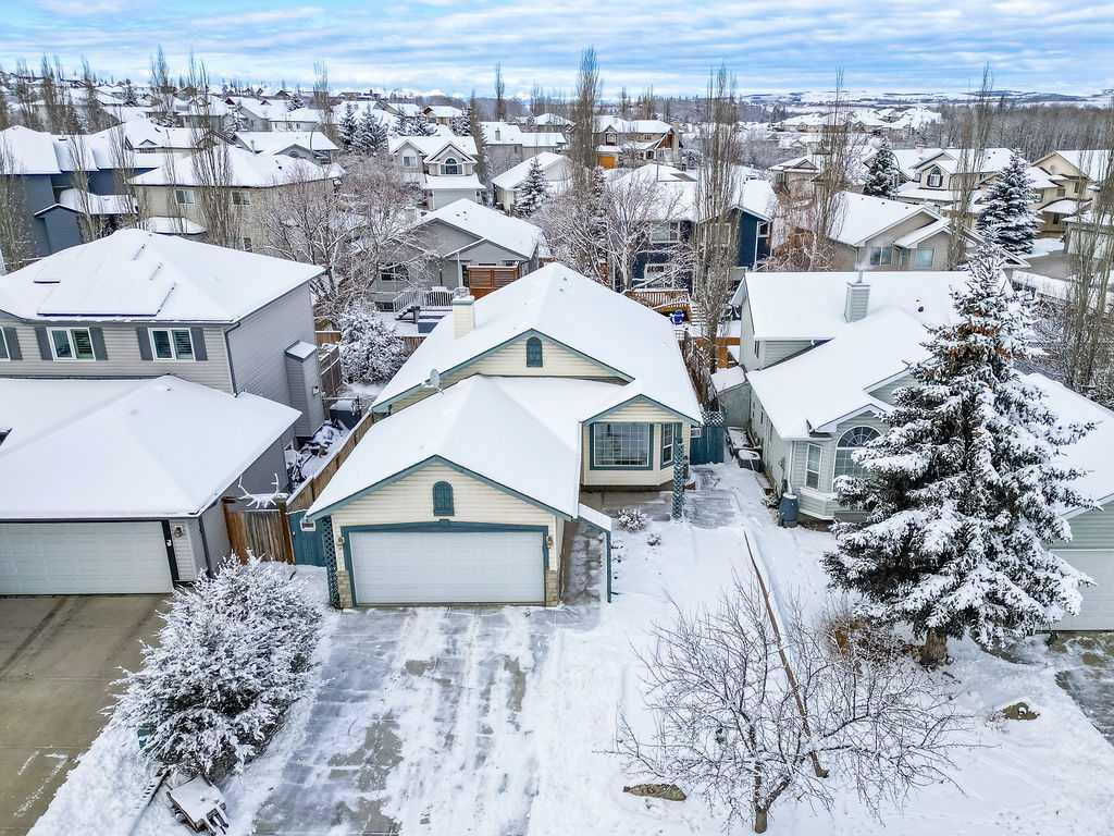 Pride of ownership shines through in this original owner, fully developed home, just steps to the Sheep River embankment. Create a lifestyle of memories in this home with features that everyone in the family will love. Step into the bright and sunny entrance and be captured by the vaulted ceilings , large windows, and gleaming floors. The main level boasts a spacious front living area with cozy gas fireplace. The perfect place to visit with family and friends - or to observe nature out the front picture window. Step through to the functional kitchen featuring loads of cupboards and counter space. The dining space is surrounded by windows and offers a peaceful space to host family meals. The functional floor plan has the bedrooms set away from the kitchen and living room. The primary bedroom boasts a large closet , room for king sized furniture, and a 3 piece ensuite with walk-in shower. 2 more bedrooms and another full bathroom complete this upper level. The lower living area has a wet bar area that could easily be converted to a mini kitchen for relatives or older children. The grand living room features an amazing gas fireplace and hearth - the perfect place to hang your stockings. Enjoy family movies in this room with surround sound ( amp and sub included) The unique spa like bathroom in lower level will certainly be a space you will want to relax in. Large jetted soaker tub provides pure bliss for the bubble bath enthusiast. A 4th bedroom and a large storage/laundry room complete the lower level. The insulated front attached double garage is a true convenience. No more walking through snow with groceries!! Relax in the back yard in a true summer oasis. West facing exposure is perfect for the gardener at heart. The upper deck has a gas line for BBQing and power awning providing shade in the afternoons. The lower deck is complete with a pergola and provides a nice bit of privacy to watch the birds and butterflies. Steps away from schools, playgrounds, miles of walking paths, shopping , and a convenient central location of Okotoks. This home is a perfect mixture of lifestyle, value, and convenience. Many features of this home include - heated floors in primary and lower level bathroom, Air-conditioning, vacuum system , 2 gas fireplaces, and UV film on all upper west windows. Make this home the first stop on your home search.