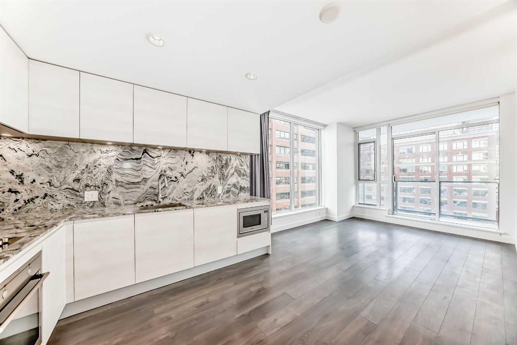 Situated in the heart of the city, in one of the most sought-after buildings, “Park Point”. The ultra-sophisticated lobby and greetings from concierge lets you know this is a very special building. Located on the 6th floor is this sleek unit with 9' ceilings, newly painted walls and wide plank floors throughout. The kitchen is accented with high end cabinetry, granite backsplash and counters, built-in high end AEG / Panasonicappliances with undermounted lighting to set the mood. The main living room faces North with floor to ceiling windows to allow ample natural light. Adjacent the living room is access your private balcony for those summer evenings and fresh air. The large bedroom has two generous sized closets. Completing this gorgeous unit is the 4-piece bath with under-mount lighting, quartz countertop, dual flush toilet, glass-enclosed shower and full tile through out. A storage room with in-suite laundry completes this unit beautfully. This one of kind building has amenities like no other including a fully equipped fitness center, Yoga studio, sauna and steam room, resident’s lounge, party room, outdoor courtyard, BBQ station, ample visitor parking, guest suites, car/pet wash bay, secured parking, 24-hour security and secured storage makes it easy to impress when hosting guests in style. Perfectly located in the heart of the Beltline, Park Point provides the highest walking score of all communities. Steps away from top-rated restaurants, cafés, shopping, entertainment, and nightlife of 17th Avenue, 10th, Stephen Ave and Mission; while the Saddledome and Stampede Park offer year-round events and sports. For those who work downtown, the +15 network is one block away, ensuring an elevated and weather protected walk. This meticulously crafted residence delivers the ultimate urban lifestyle with premium finishes and top-tier amenities.