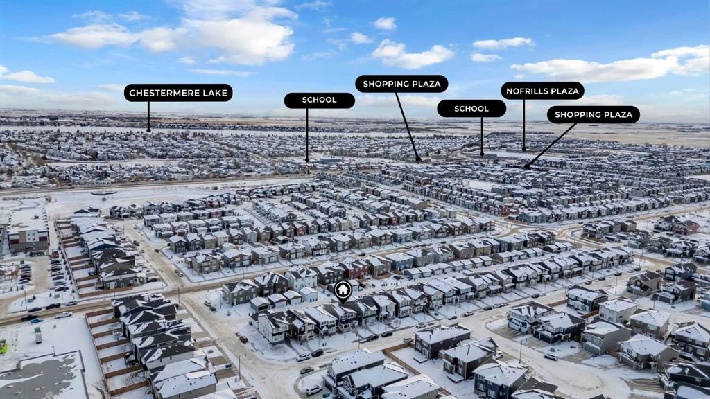 Welcome to 190 Dawson Harbour Rise, a stunning detached home that offers significantly more than the typical laned property. Situated on an upgraded 32 ft. wide conventional lot, this home features a grand, extra-wide entryway and an oversized covered front porch—perfect for enjoying your morning coffee or summer evenings. Step inside to a bright, open-concept main floor flooded with natural light thanks to extra windows positioned on the front, rear, and sides. The heart of the home is the private, L-shaped kitchen tucked away at the rear. It is a chef’s delight featuring dual-tone cabinetry, a massive island, a stylish herringbone backsplash, and a walk-in pantry. A convenient mudroom completes this level. Upstairs, you will find a functional layout including a central bonus room with upgraded hardwood flooring, convenient upper-level laundry, and three generous bedrooms with oversized windows. The bathrooms are well-appointed with undermount sinks, including a main bath upgraded with a standing shower. The basement offers potential for future development or income; it comes equipped with a separate side entrance, two windows, and mechanical systems tucked neatly into the corner. Outside, the expensive work is already done: enjoy a fully concrete side walkway, a concrete rear parking pad with curb wall, and an extra 9 ft. of space beside the parking pad for toys or storage. Located in a quiet area of Chestermere with no direct front neighbors, you have ample street parking and privacy. You are walking distance to the future Dawson School and potential Recreation Centre sites, and minutes from Rainbow Creek Elementary, Chestermere Lake Middle School, and East Hills Shopping Centre. Priced to Sell - Check 3D tour and book your showing today.