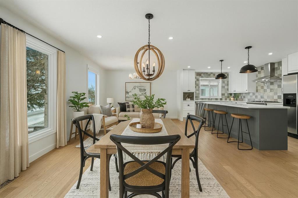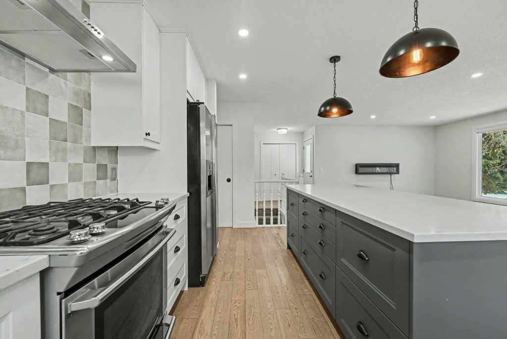 What a location !! Your move to Cochrane starts here. Tucked away on a peaceful, tree-lined street in Cochrane’s charming Old Town East Side, this beautifully renovated 1,250 sq. ft. bungalow offers the perfect blend of modern comfort and small-town serenity. Backing directly onto a tranquil hillside Ravine & Reserve. The setting alone feels like a private retreat. Step inside to an open, airy main floor where wide-plank hardwood flows throughout and natural light pours in through brand-new windows. The stunning new kitchen features quartz counters, a generous island, new appliances, and a seamless sightline over the living and dining areas—all framed by elegant California ceilings. With 3 bedrooms up, 2 fully updated bathrooms, and a convenient main-floor laundry, every inch of this home is designed for effortless living. The primary suite includes its own ensuite, and a massive pantry offers exceptional storage. Both back bedrooms have doors that open onto a sprawling new back deck and additional patio space—ideal for morning coffee, evening gatherings, or simply soaking in the peaceful reserve views. Central air conditioning, a new high-efficiency furnace, updated electrical and plumbing, new blinds, pot lighting, and a fresh H2O tank ensure comfort and reliability throughout. Outside, the appeal continues. The generous 46' x 140' lot is complemented by a newly paved driveway, new sidewalks, a welcoming front porch, gemstone custom exterior lighting, and an oversized 2.5+ car garage with impressive 9-ft ceilings—perfect for vehicles, hobbies, or additional storage. The finished lower level expands your living space even further and offers endless versatility, along with abundant storage for everything you need to tuck away. Located just minutes from parks, schools, and downtown Cochrane—only four minutes to every convenience—you’ll have the best of both worlds: peaceful living with quick access to everything you need. A beautifully updated home, a prime location, and a lifestyle you’ll love—this is your opportunity to make Cochrane home. Perfect for a small family, a couple looking to downsize or the perfect home to retire to. Renovation was approx $100,000. PHOTOS ARE ACTUAL, BUT VIRTUAL FURNITURE HAS BEEN ADDED FOR POTENTIAL BEFORE AND AFTER IDEAS