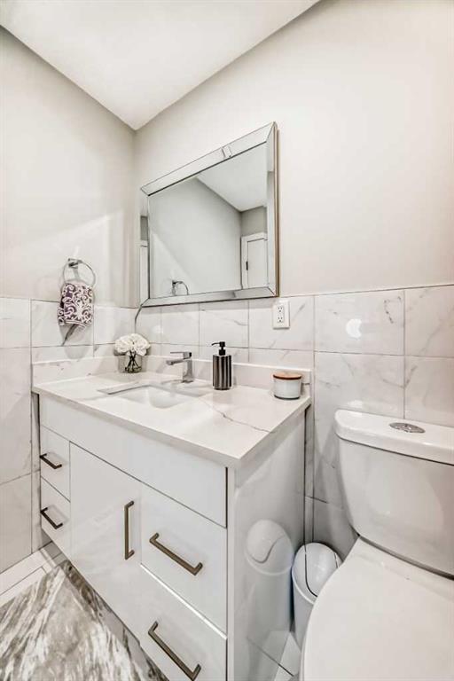 The fully finished basement, accessible through it's own separate entrance, open concept, including a bedroom, den, full bathroom, bar and a second kitchen. Complete with a separate laundry/storage area.